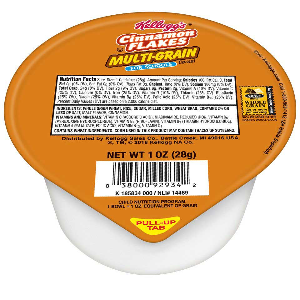 The Kellogg's Multi-grain Cinnamon Flakes is a delicious, on-the-go cereal, which can be enjoyed at any time of day. This multi-grain cereal has a hint of cinnamon in every bite. It comes packed in an easy-to-use cup for convenience. With 96 cups of the Kellogg's cereal, this bulk pack will be an ideal option for bed and breakfasts, hotels, cafeterias, and convenience stores.