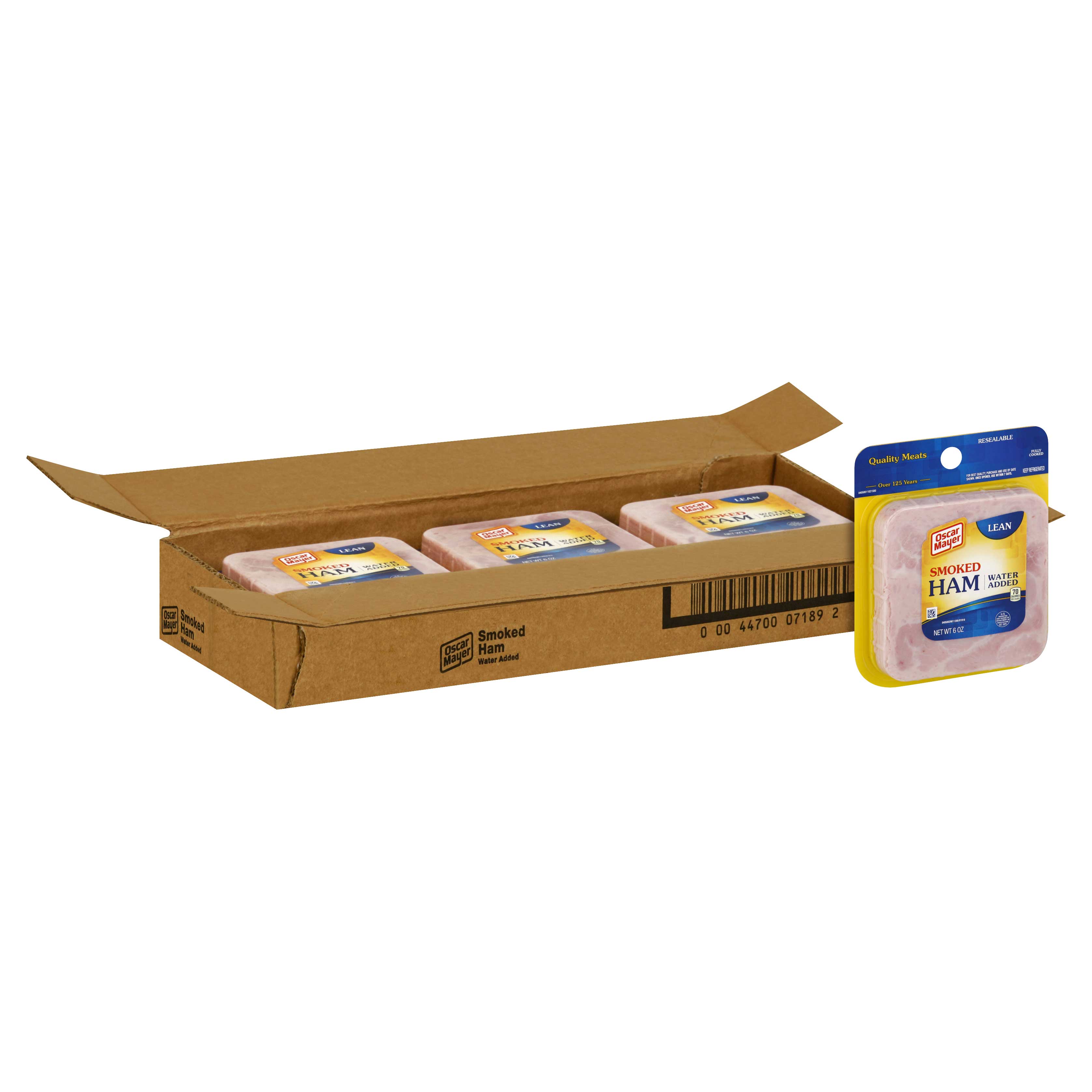 The Oscar Mayer Square Sliced Cooked Smoked Ham is ready-to-eat lean lunch meat. These flavorful meat slices can be used to make classic ham and cheese sandwiches or mixed with salads. It comes in a convenient resealable package. The bulk case is ideal for delis, grocery stores and supermarkets.