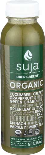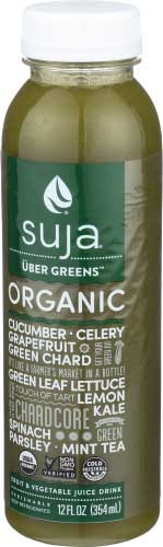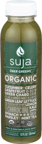 The delicious combination of nutrient dense leafy greens, tangy citrus and revitalizing mint tea to keep you fueled and focused throughout your day. Uber Greens contains cucumber, celery, grapefruit, green chard, green leaf lettuce, lemon, kale, spinach, parsley, peppermint tea and spearmint tea. 12oz USDA Certified Organic Non-GMO Project Verified Kosher certified Vegan Dairy-free, soy-free, gluten-free No added sweeteners