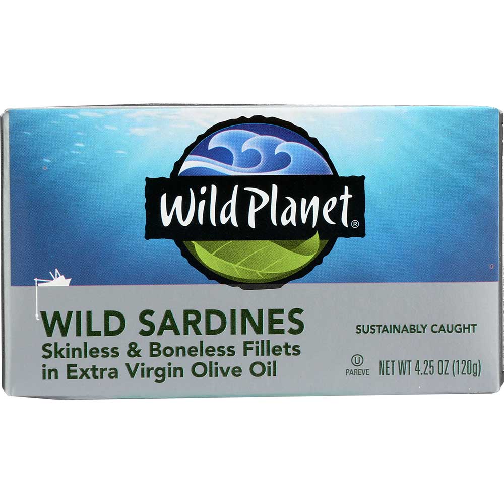 Wild planet skinless boneless wild sardines are nutritional powerhouses loaded with essential nutrients. Each meaty sardine portion is packed with omega 3, protein, calcium, iron and potassium. These moroccan sardines are sustainably sourced in the atlantic ocean. We hand-fillet only fresh fish, not frozen; this produces the most flavorful and mild sardine fillet. The firm texture is evidence of supreme quality. Includes one 4.25 oz. Box of wild planet skinless boneless wild sardines in extra virgin olive oil. See nutrition fact panel for allergens. Wild planet is committed to providing the finest tasting sustainably caught seafood while supporting the conservation of wild marine ecosystems. Wild planet offers a full line of top quality seafood with fresh-from-the-sea flavor. We're sure you'll agree that nothing compares to the flavor, nutrition and value offered by wild planet.