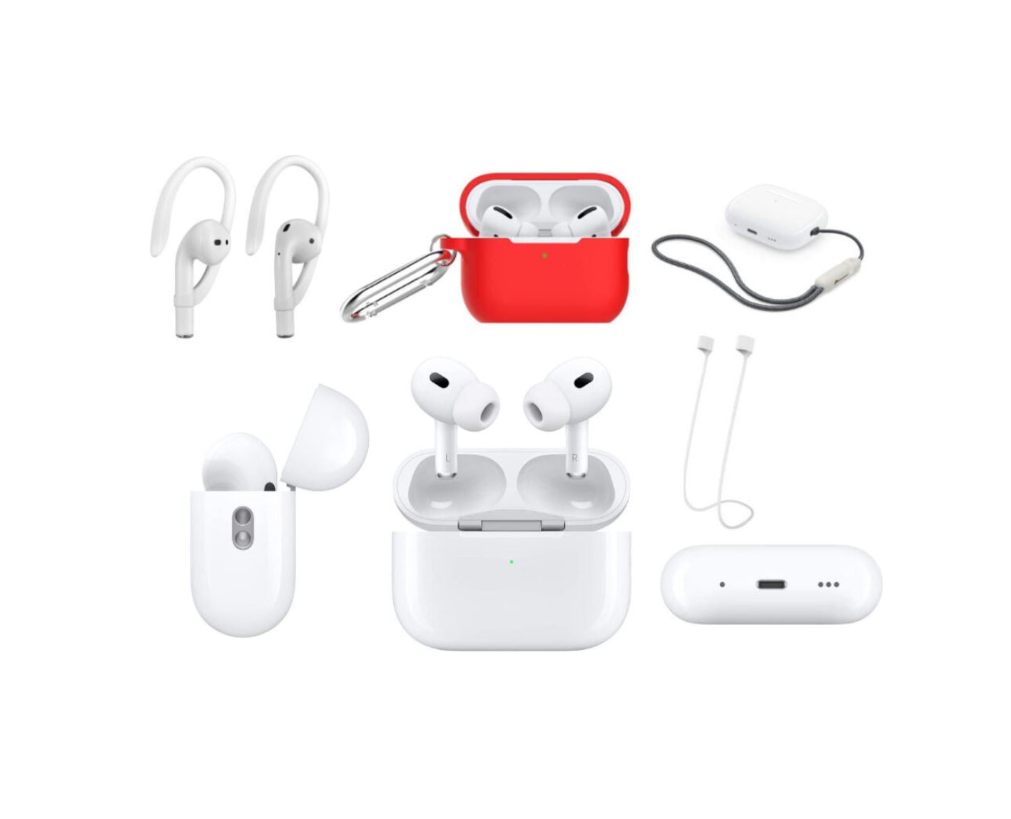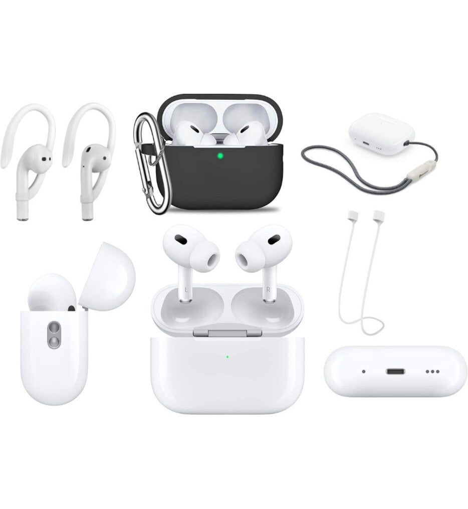 Active Noise Cancellation reduces unwanted background noiseAdaptive Transparency lets outside sounds in while reducing loud environmental noisePersonalized Spatial Audio with dynamic head tracking places sound all around you²Multiple ear tips (XS, S, M, L)Touch control lets you swipe to adjust volume, press to direct media playback, answer or end calls, and press and hold to switch between listening modesSweat and water resistant for AirPods Pro and charging case⁴MagSafe Charging Case with speaker and lanyard loopUp to 6 hours of listening time with Active Noise Cancellation on³Up to 30 hours of total listening time with the MagSafe Charging Case and Active Noise Cancellation on³Quick access to Siri by saying “Hey Siri”⁵Easy setup, in-ear detection, and automatic switching between devices⁶Audio Sharing between two sets of AirPods on your iPhone, iPad, iPod touch, or Apple TV⁷Find My with proximity view for AirPods Pro and Precision Finding for charging case8⁸¹As compared to AirPods Pro (1st generation).²Spatial Audio works with movies, TV, and video in supported apps. iPhone with TrueDepth camera required to create personalized profile.³Battery life varies by use and configuration. See apple.com/batteries for details.⁴AirPods Pro and charging case are sweat and water resistant for non-water sports and exercise, and they are IPX4 rated. Sweat and water resistance are not permanent conditions.⁵Siri may not be available in all languages or in all areas, and features may vary by area. Internet access required. Cellular data charges may apply.⁶Requires an iCloud account and a compatible Apple device running the latest operating system software.⁷Works with iPhone 8 or later and iPod touch (7th generation) with the latest version of iOS; and 12.9-inch iPad Pro (2nd generation or later),11-inch iPad Pro, 10.5-inch iPad Pro, iPad (5th generation or later), iPad Air (3rd generation or later), and iPad mini (5th generation or later) with the latest version of iPadOS.⁸Find My functionality requires iOS 16 or later; coming late fall 2022 to iPadOS and macOS.