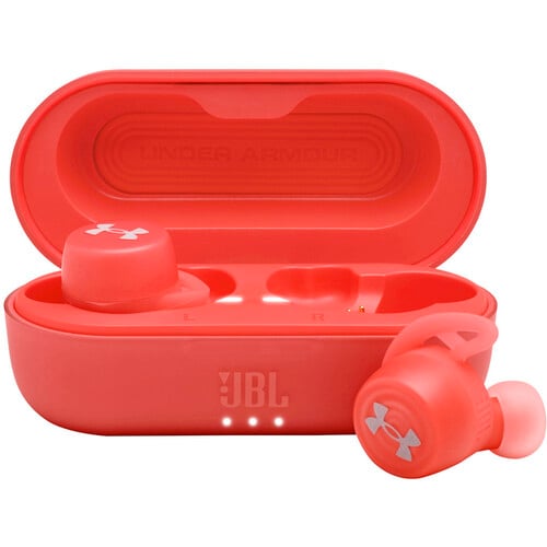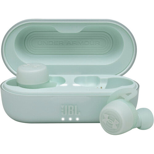 UA True Wireless Streak is engineered to maximize performance while minimizing size and distractions. A lightweight design with Sport Flex Fit ear tips provides optimized comfort andsecure fit tested by athletes. UA waterproof technology delivers element-battling protection,while JBL Charged Sound is boldly tuned with rich bass for motivation. Bionic Hearingfeatures TalkThru Technology to quickly interact with your workout partner, and Ambient AwareTechnology to hear your surroundings. A quick tap provides seamless controls, and reflectiveaccents allow you to stay seen. A pocketable charging case provides 18 hours of total playtime, powering you to achieve your personal best.