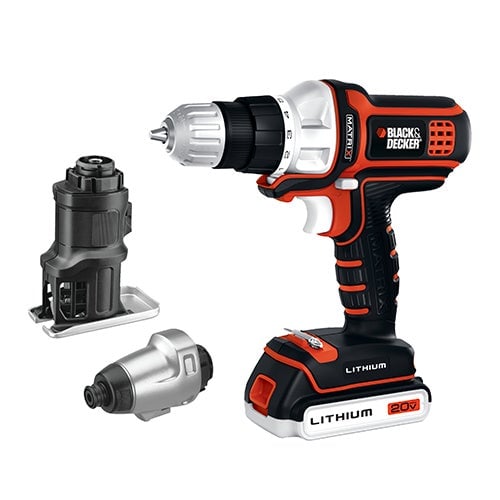 Drill and drive large fasteners with ease. Quick Connect System enables quick and easy attachment changes. Best-in-class speed and torque. 10 Clutch settings. 3/8" Chuck size. Includes: Drill/Driver attachment. Impact driver attachment. 20V MAX Lithium-ion battery. 20V MAX Lithium-ion charger. Double-ended bit tip.