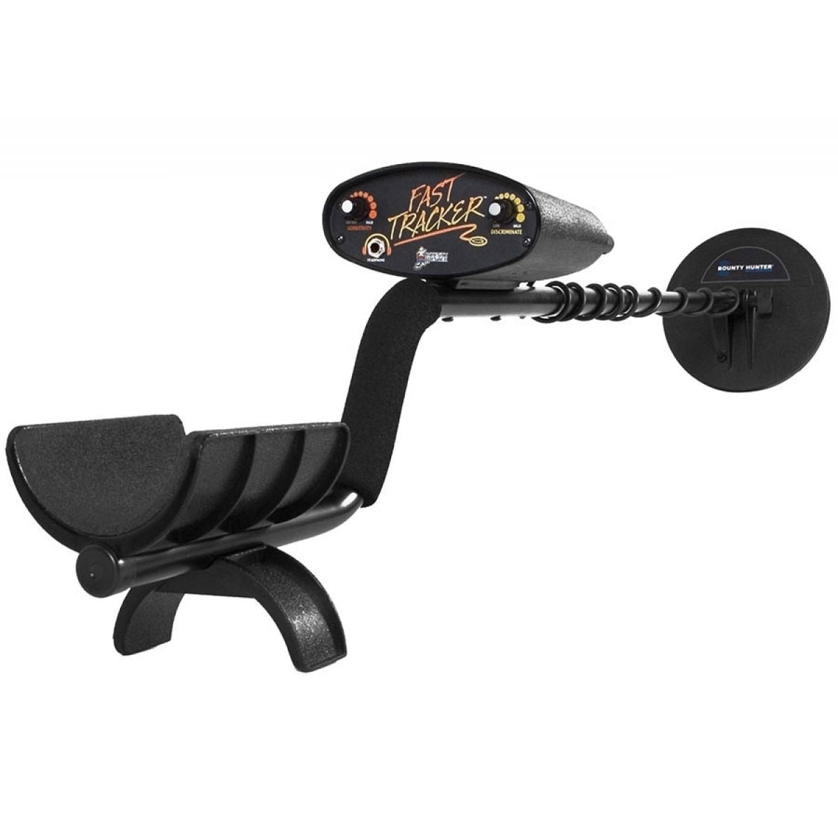 The Bounty Hunter Fast Tracker Metal Detector will detect treasure in extreme ground conditions -- from saltwater beaches to highly mineralized inland sites. This rugged model is so efficient and user friendly sensitivity is maintained without operator adjustments to the circuitry. The entire line of Bounty Hunter metal detectors operate on two 9-Volt batteries (not included) and are designed to be lightweight and ergonomic for easy handling and comfortable use. Their standard motion all-metal mode detects all types of metal while the progressive discrimination control eliminates iron and other unwanted items. As a target nears the Fast Tracker's two-tone audio feedback aids in distinguishing between valuables and undesirable metals. This model also comes equipped with a 1/4" headphone jack compatible with most headphones (not included) for privacy while treasure hunting. In addition Bounty Hunter equips all their metal detectors with a preset ground balance that neutralizes the response to mineral content in the ground.