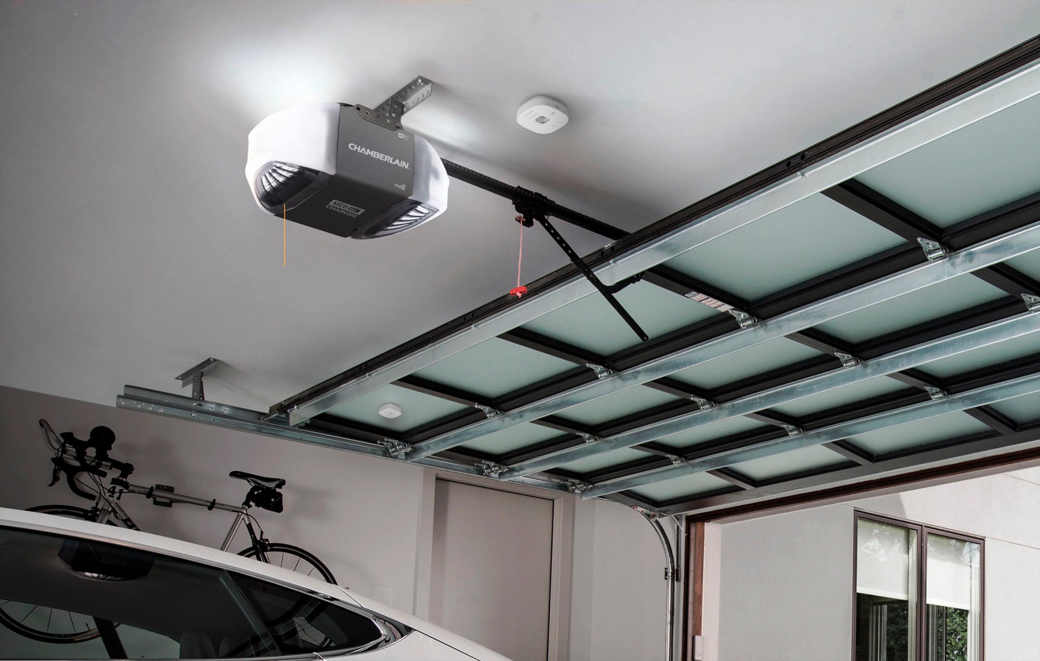 Control, secure and monitor your garage door from anywhere and receive real-time notifications when your garage door is opening or closing.