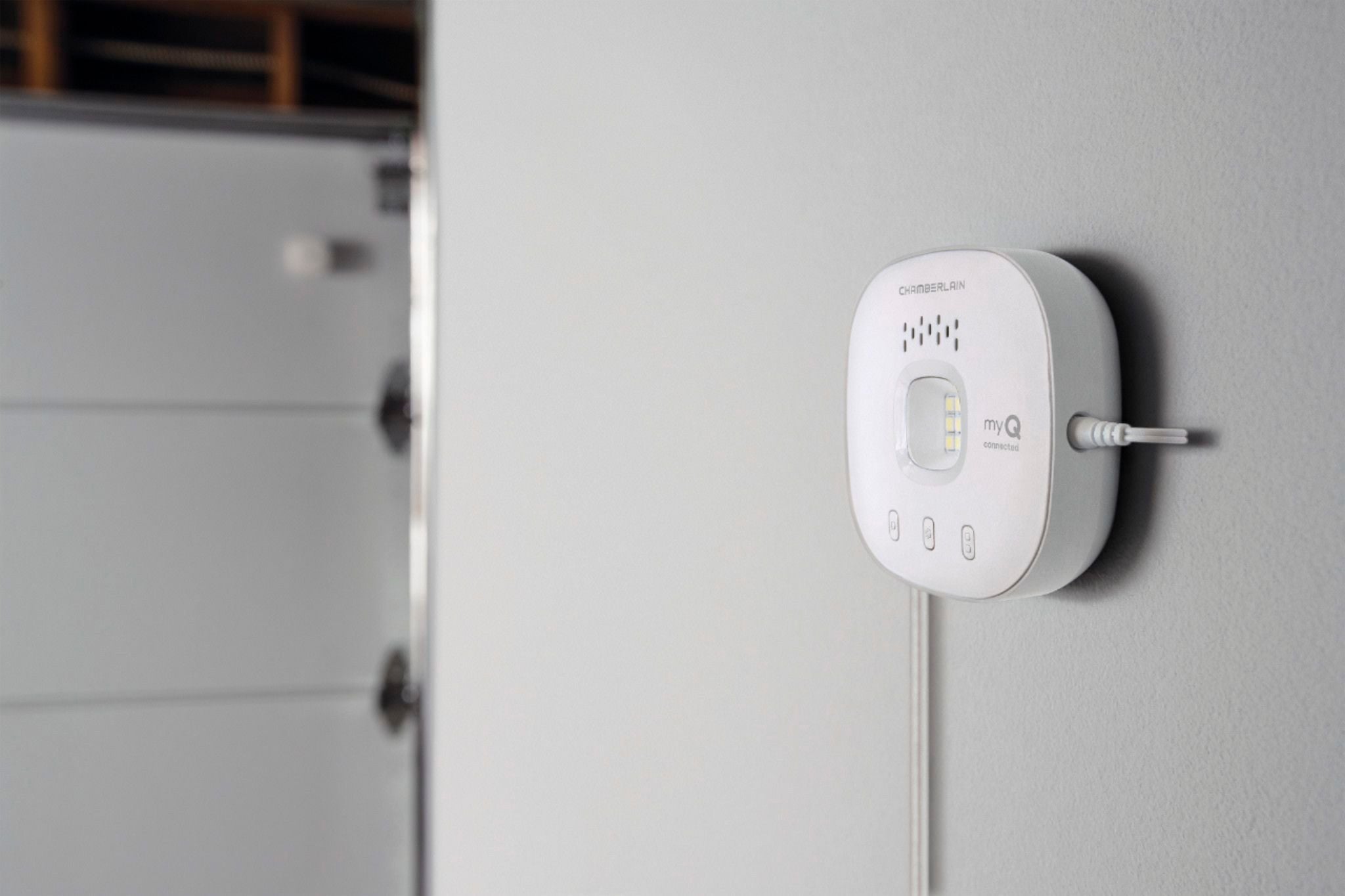 The Simple Way to a Smarter Garage. Make your existing garage door opener smart in minutes with Smart Garage™ Control. The Smart Garage Control is simple to install and allows you to link your existing garage door opener to the myQ® App so you can control, secure and monitor the garage from your smartphone. Featuring a compact modern design, Smart Garage Control is compatible with all major brands of garage door openers manufactured after 1993 that have standard safety sensors. It’s sleek white finish blends in with ceilings, walls and garage doors, making it an aesthetic complement to any garage environment. Once paired with the myQ App, it offers more than the ability to simply open and close a garage door. Homeowners with Smart Garage Control benefit from on-the-go management of daily activities, like never having to wonder if the garage door was left open, receiving real-time alerts when children arrive home from school, remotely letting in the dog walker or service person in and now in-garage delivery to keep packages safe and secure.