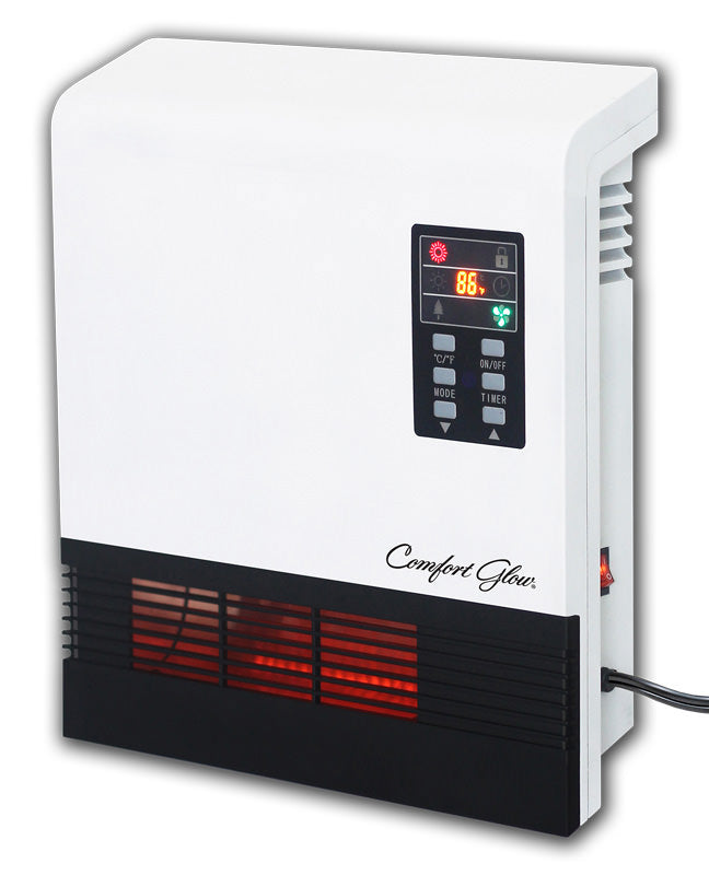 This quartz wall heater mounts easily on the wall. It features an infrered quartz heating element. It includes a resettable GFI safety plug. The turbo fan is constructed of aluminum blades. moisture resistant cabinet. adjustable thermostat. thermal cut-off. LED display. remote control with timer. quiet operation. cool to the touch. 5200 BTUs. 120VAC, 1500W, 12.5 AMPS. 600 sq ft coverage. 6 ft cord. 5200 BTUs. 120VAC, 1500W, 12.5 AMPS. 600 sq ft coverage. 6 ft cord.