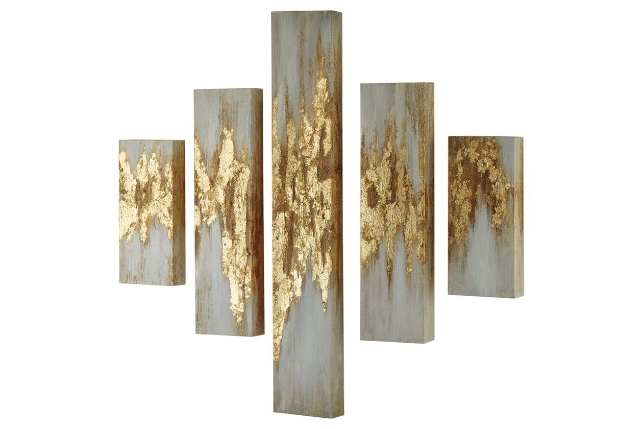 All that glitters is always gold with this wall art set. Fancy up your space with just the right amount of chic sparkle. The golden texturing glams up the free-flowing pattern that mimics beautiful, natural erosion-talk about high-drama styling.