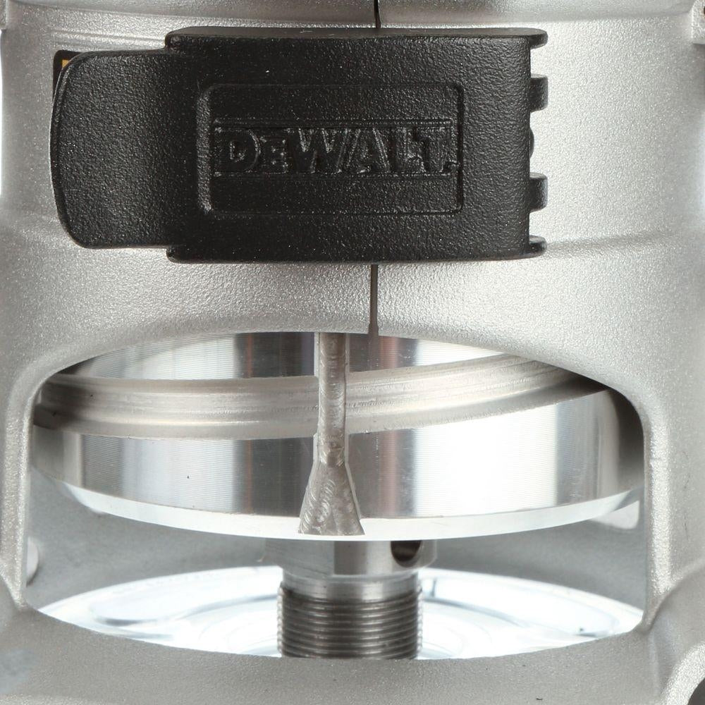 DEWALT 1-3/4 HP Fixed Base/Plunge Router Combo Kit has the power to rout and smooth the toughest hardwoods. The micro-fine depth adjustment ring allows for precise adjustments in 1/64 in. increments. The tool-free, steel motor cam lock and quick-release motor latches make bit and base changes fast and easy when you need to switch tasks.