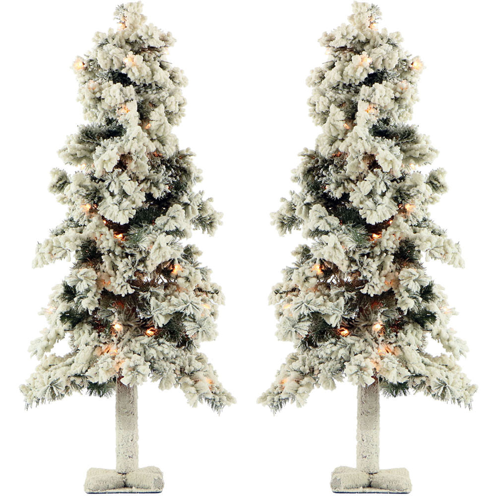 The Snowy Alpine artificial Christmas trees from Fraser Hill Farm feature lifelike flocked foliage and all-metal hinged branch construction. Fraser Hill Farm produces the most realistic trees in the market, offering all the long-term benefits that come with owning an artificial tree. Both trees in this set simply unfold out of storage to create customizable seasonal elegance in your foyer, great room, or entry way. They are each pre-strung with a system of evenly distributed, clear bulbs.