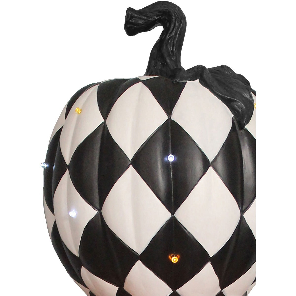 • Resin pumpkins feature harlequin, stripe, and polka dot designs