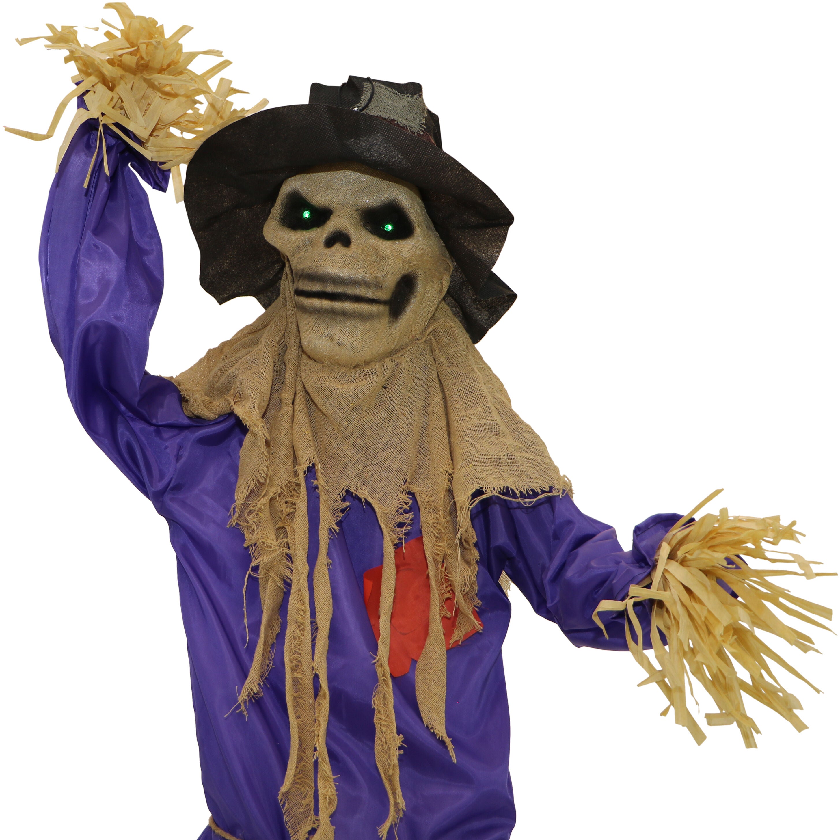 Be afraid. Be very afraid of Haunted Hill Farm's Haunted Cornfield Collection. These blood curdling creatures are sure to terrify any trick-or-treaters, co-workers, or customers. Bates the Haunted Scarecrow is far too eager to guard your home this Halloween. The terrifying half-straw, half-man monster cackles evilly as he warns guests, “I see you. Adjust his bendable arms to point directly at visitors… Bates emits thunder claps and wind gusts into the night as his eyes flash a gruesome green. He can be suspended by his included hanging loop or perched on his stand next to your holiday treats. Don’t be fooled by Bates’ human-like attire. There isn’t a shred of decency in the horrific hay man.