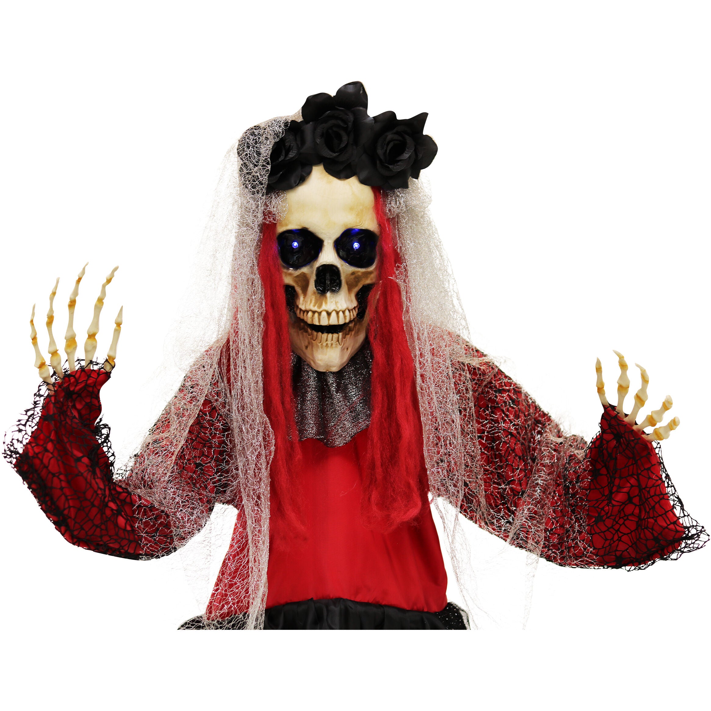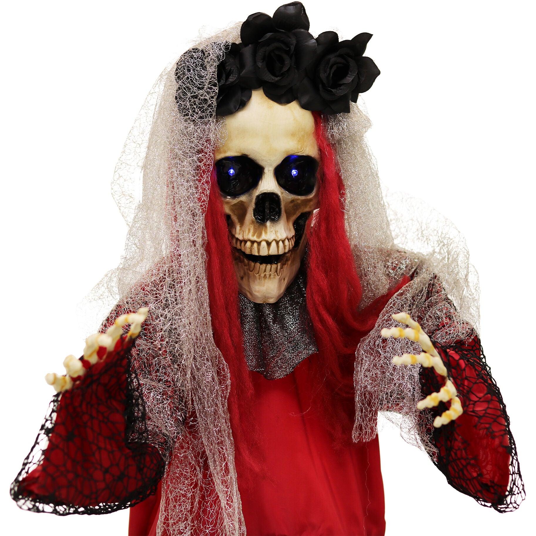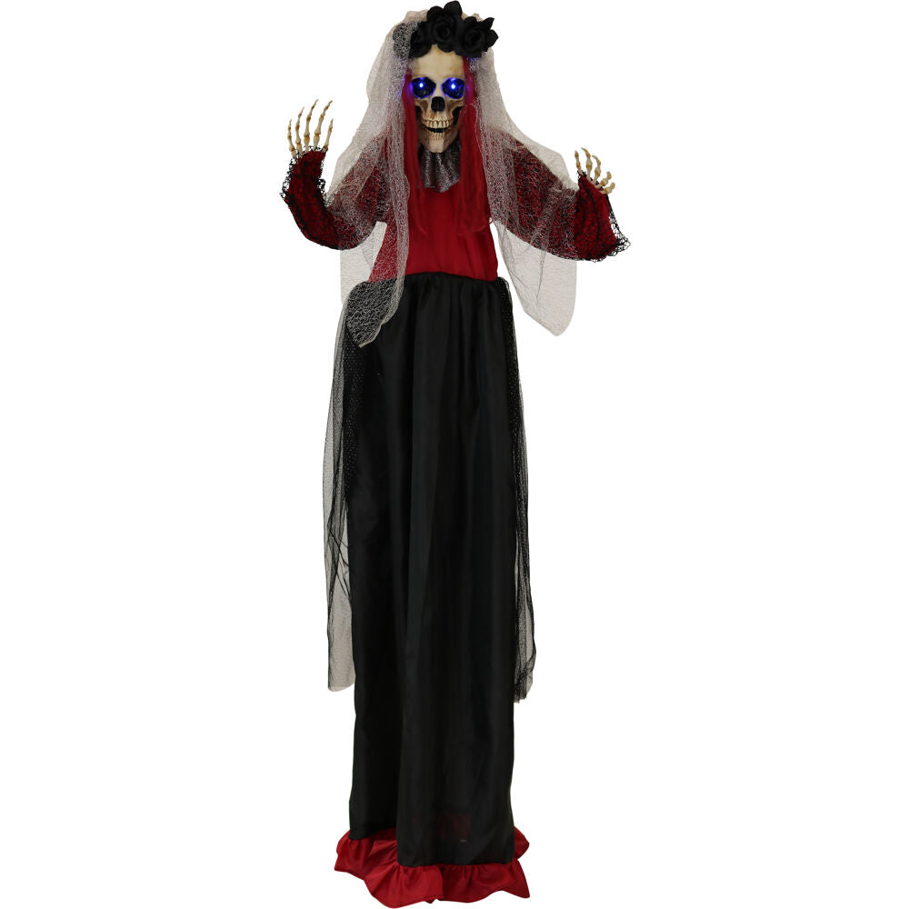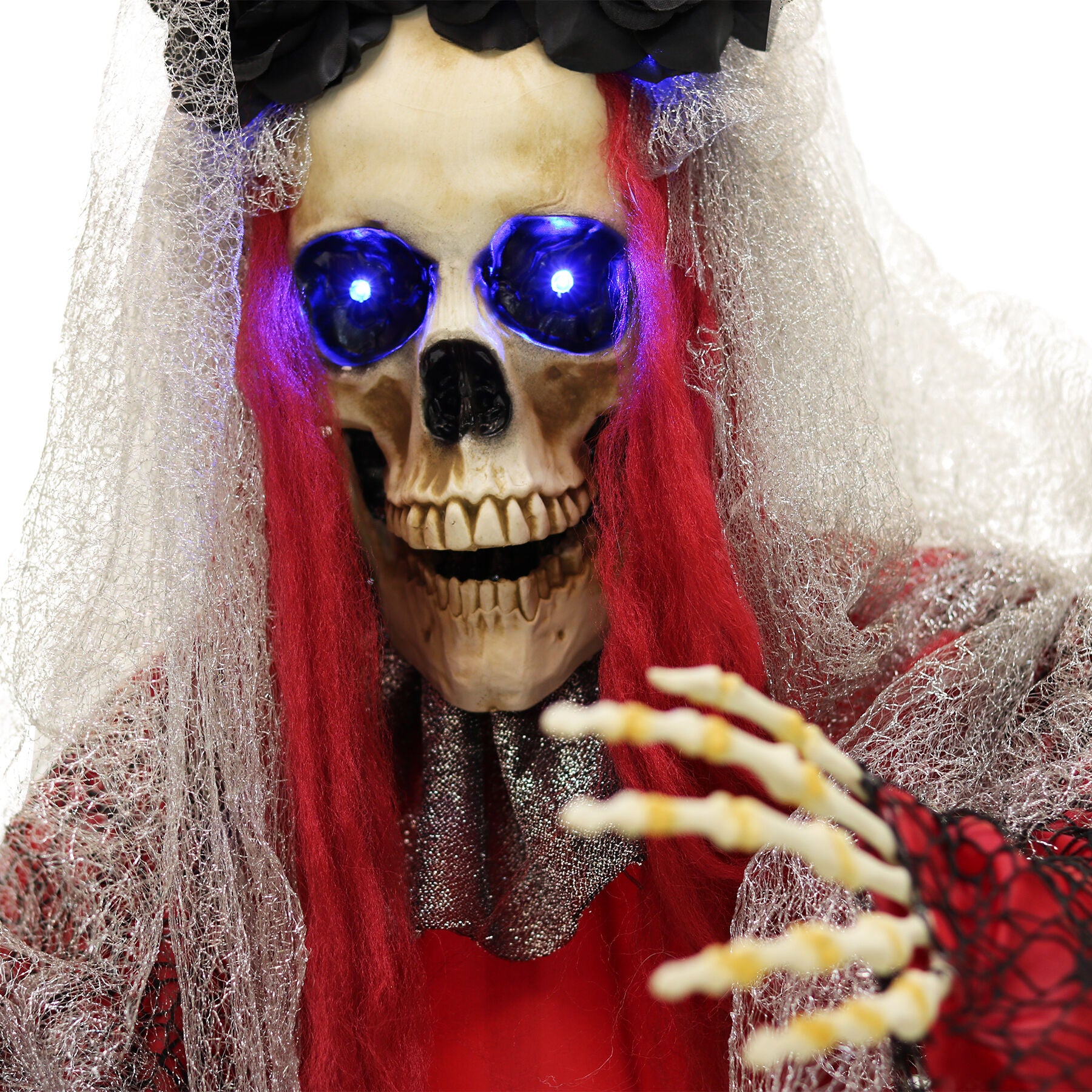 Haunted Hill Farm 5-Ft. Animatronic Voodoo Lady, Indoor/Covered Outdoor Halloween Decoration, Red LED Eyes, Poseable, Battery-Operated, Martina