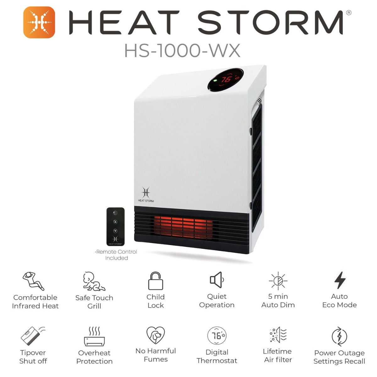 The Heat Storm Wall Heater Unit is a great solution for any bedroom or small room where there is not much floor space. At 1000-Watt this heater will easily heat up your room but you will not have issues tripping your breaker if you want to run other electronics. This heater is safe to touch, even on the grill, making a great choice for anyone. This unit has two power modes, one uses the full 1,000-Watt (red leaf), while the second mode (green Leaf) uses only 500-Watt. Each unit contains our Patented Heat Exchanger with HMS Technology that allows maximum heat from the infrared quartz bulbs without any heat loss from the unit.