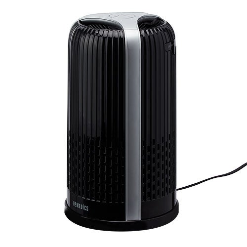 Ideal for small rooms up to 89 sq ft. Great for kids bedrooms and home offices. 360-degree HEPA-type filtration. Removes up to 99% of airborne allergens as small as 0.3 microns. Pre-filter captures large particles. Changes the air in a 291 sq ft room every hour. Night-light. Ionizer with on and off. Essential oil tray with 3 oil pads. Replace filter indicator. Smoke CADR: 58.