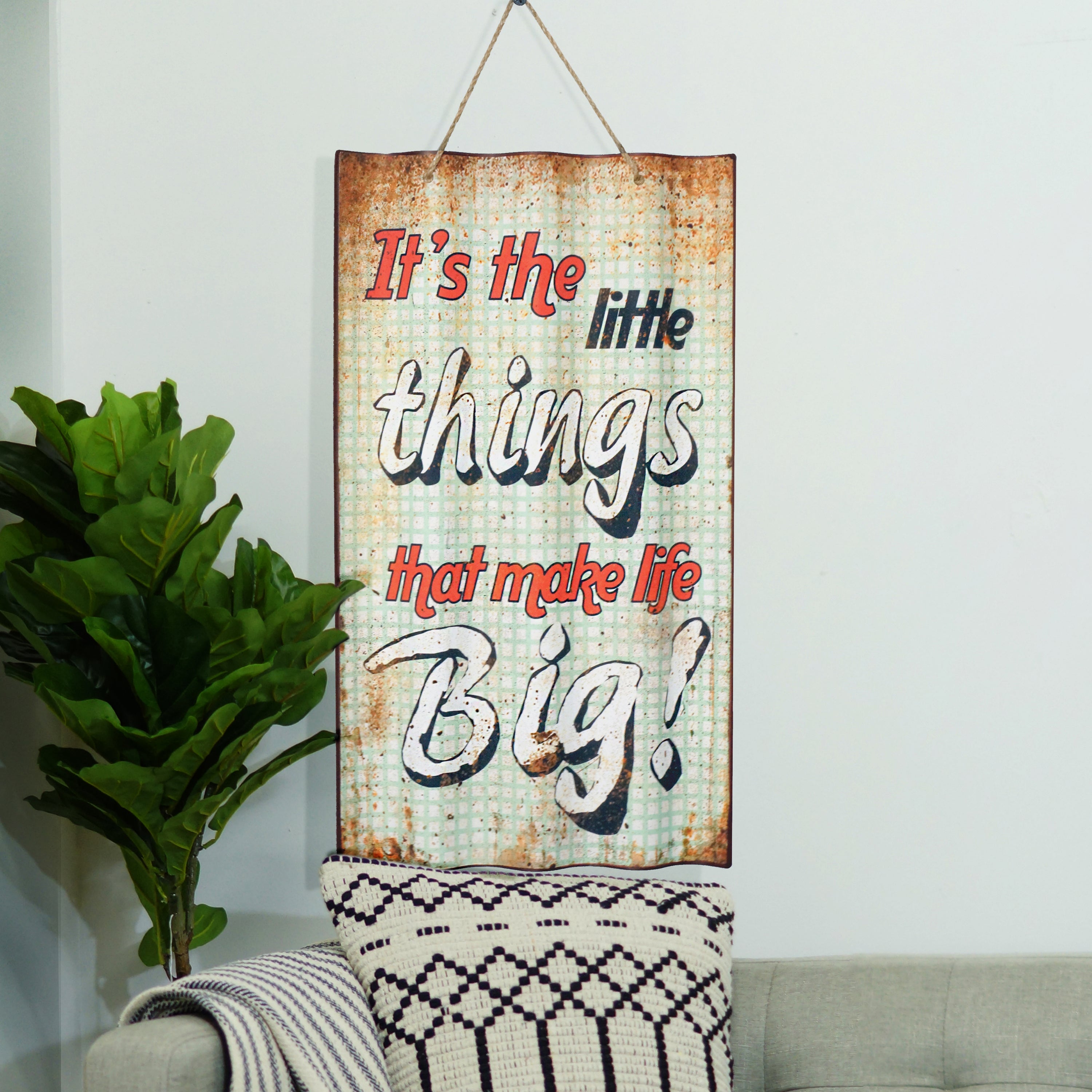 Metal Sign "Little Things" with Distressed Finish