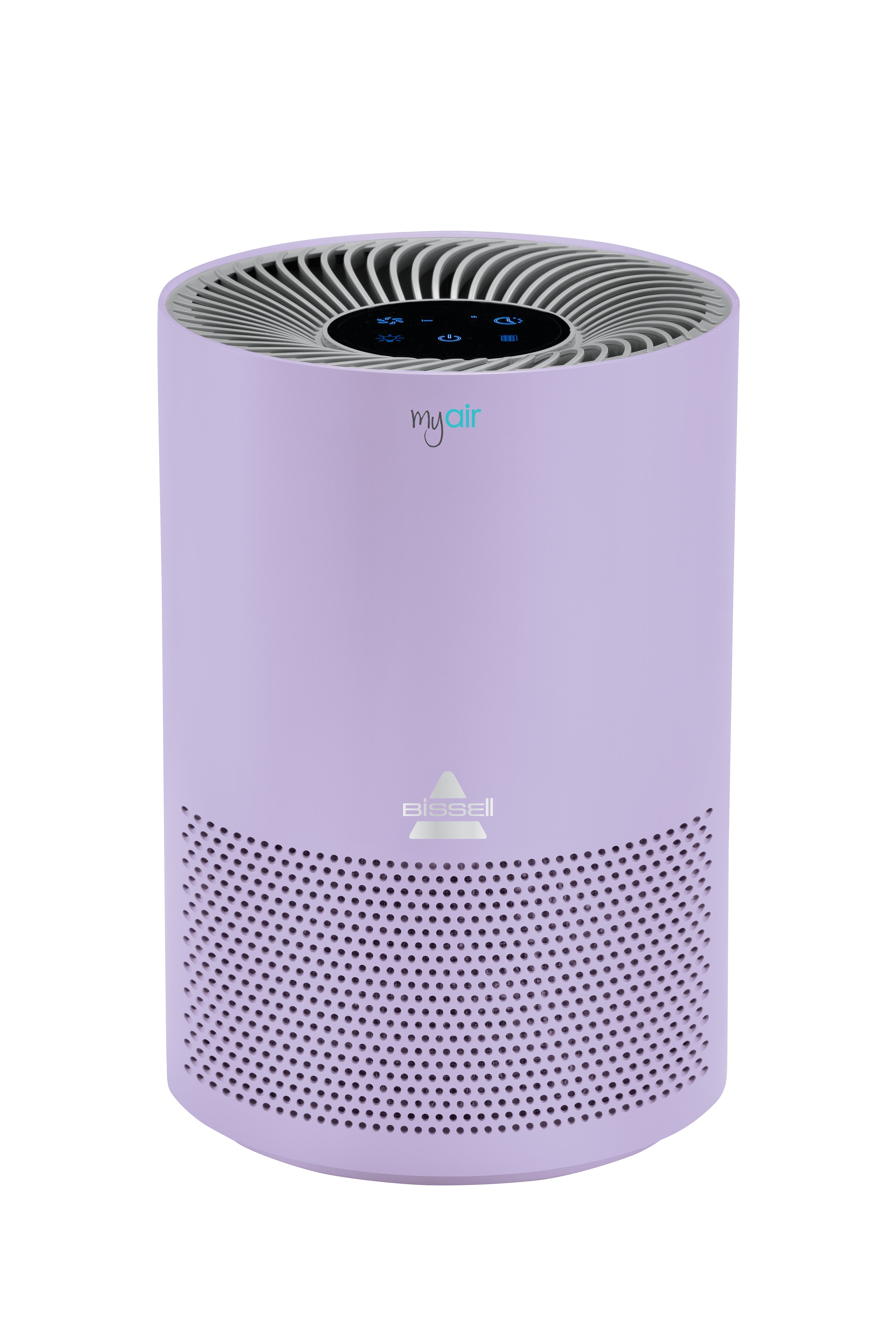 MyAir Personal Air Purifier, PurpleThe MyAir purifier is small in size but designed for plenty of purifying power. 3-in-1 High Efficiency, Activated Carbon and Pre-filter captures 99.7% of particles. Captures 0.3 micron particles or larger including dust, dander, smoke and pollen. Operates at whisper-quiet levels for a sound sleeping environment. Change filter indicator. Night light feature. High, Low and Sleep modes. 6ft Power cord. Dimensions: 12"H x 8"W.