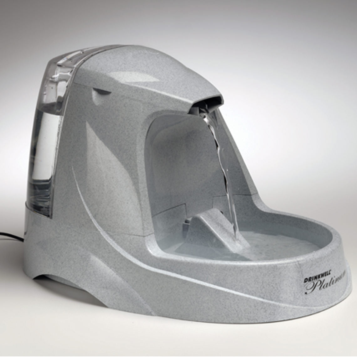 Patented 5-inch free-falling water stream Holds 168 fluid ounces of water Keeps your pet off counters and out of sinks and toilets Includes reservoir replaceable charcoal filter snap-on lid pre-filter and submersible pump