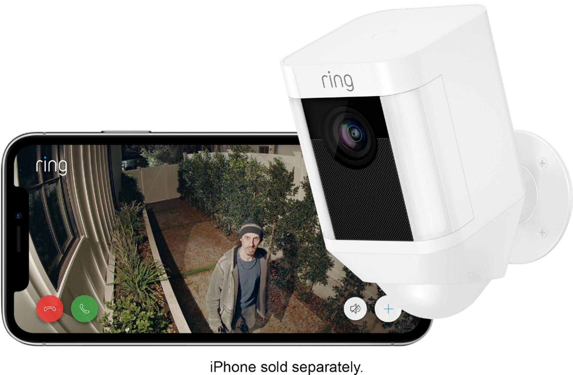 Monitor your property from your phone, tablet or PC with Ring Spotlight Cam Battery, a motion-activated security camera with LED spotlights, a siren alarm and a rechargeable battery pack. Ring Spotlight Cam battery lets you adjust your motion sensors, so you can get the ideal setting for you and your home. When anyone steps on your property and triggers your motion sensors, you