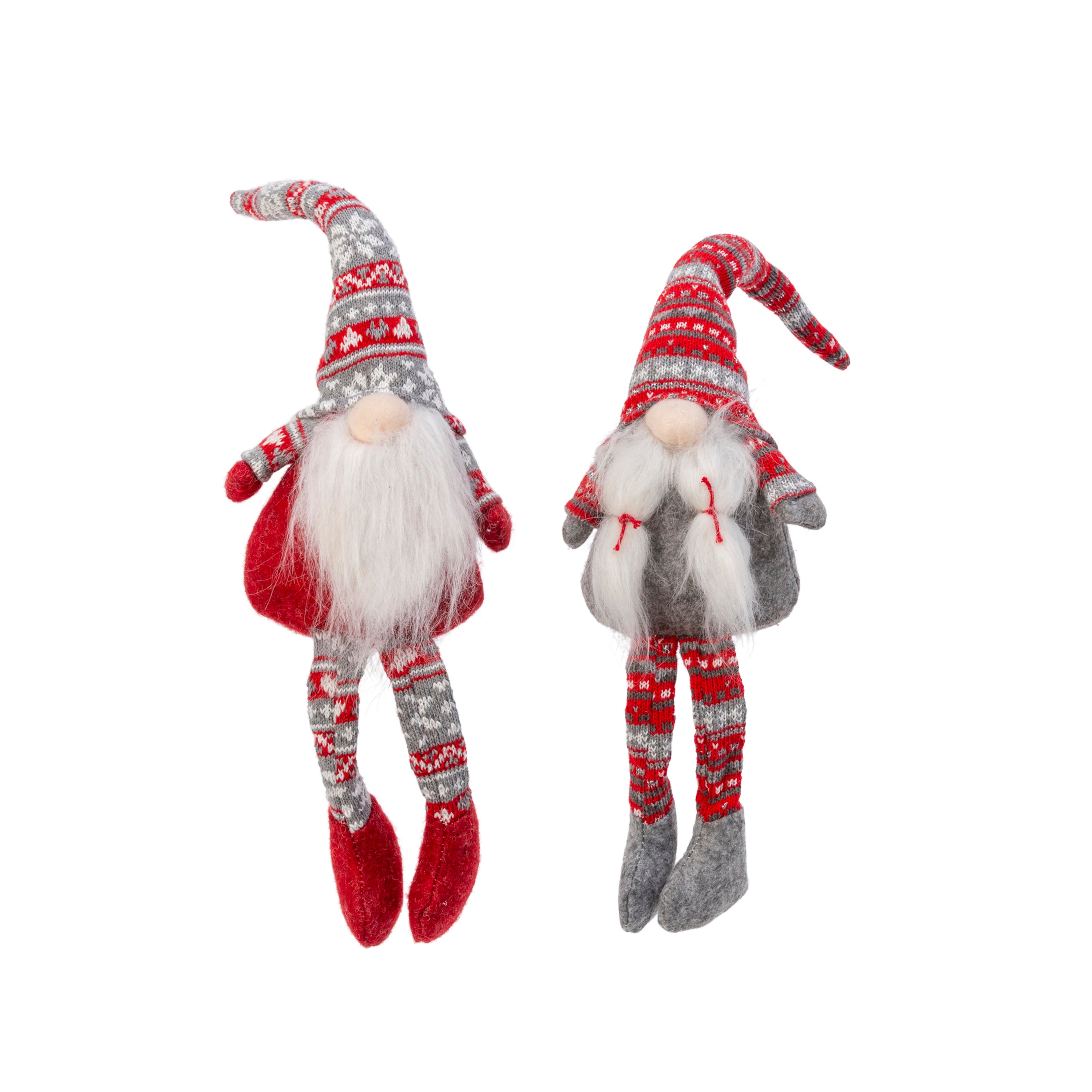 Set of 2, 31.5"H Battery Operated Lighted Fabric Gnome Shelf Sitter