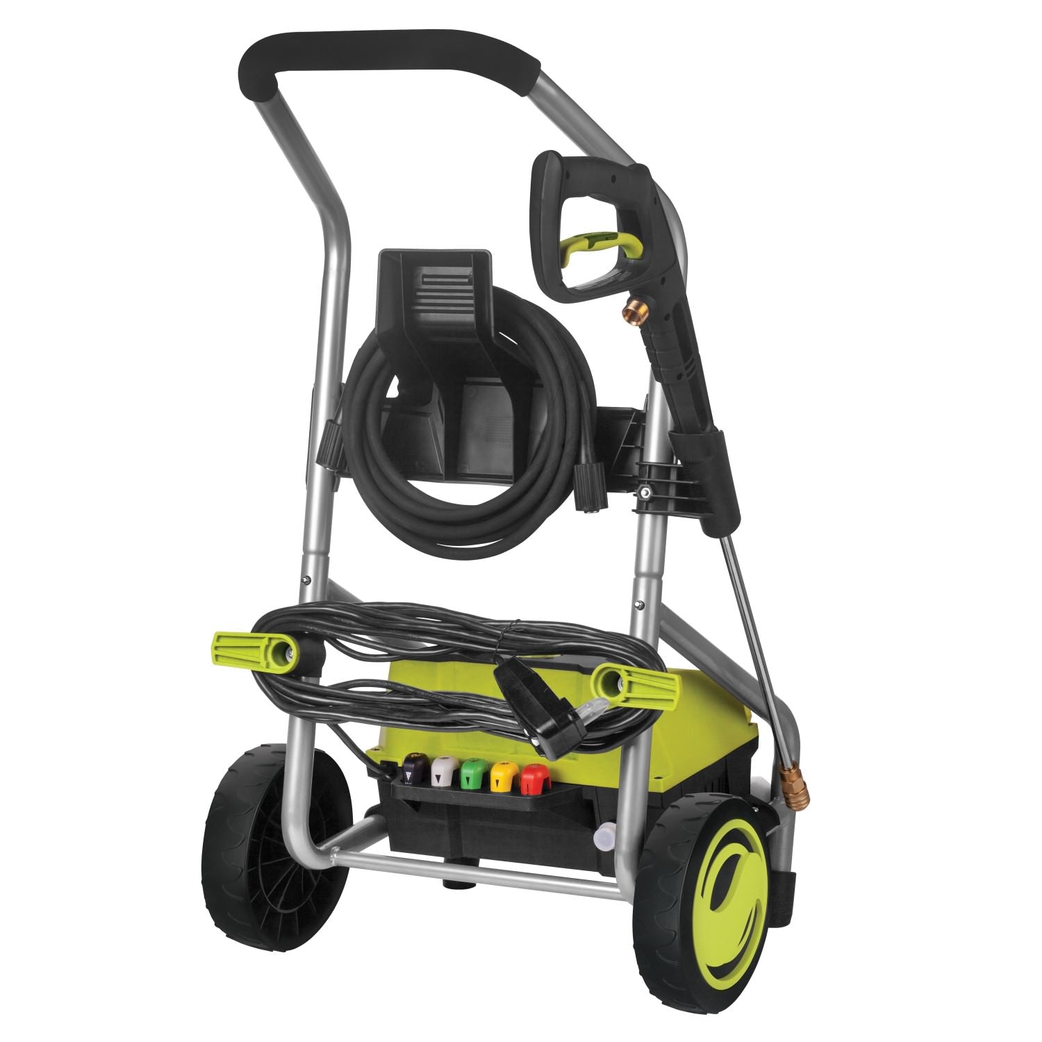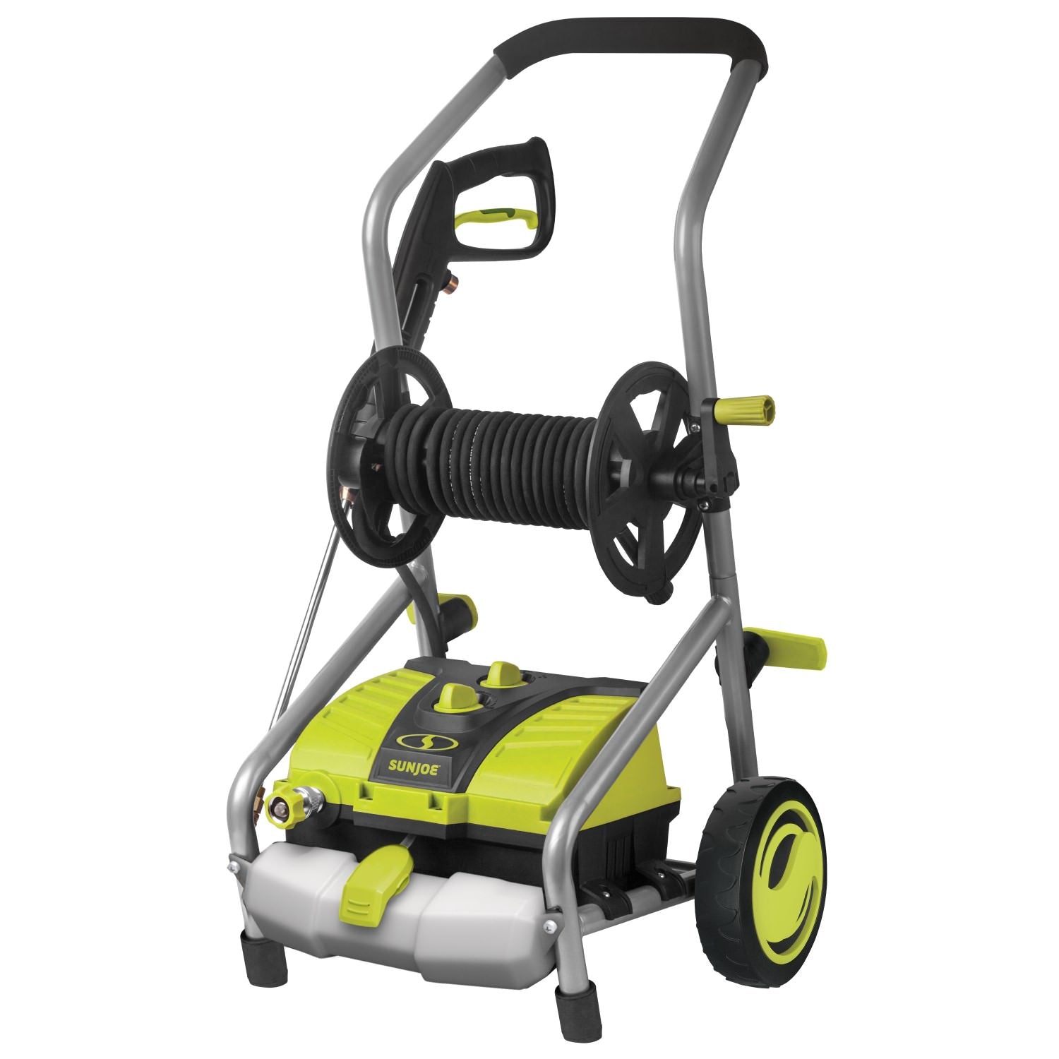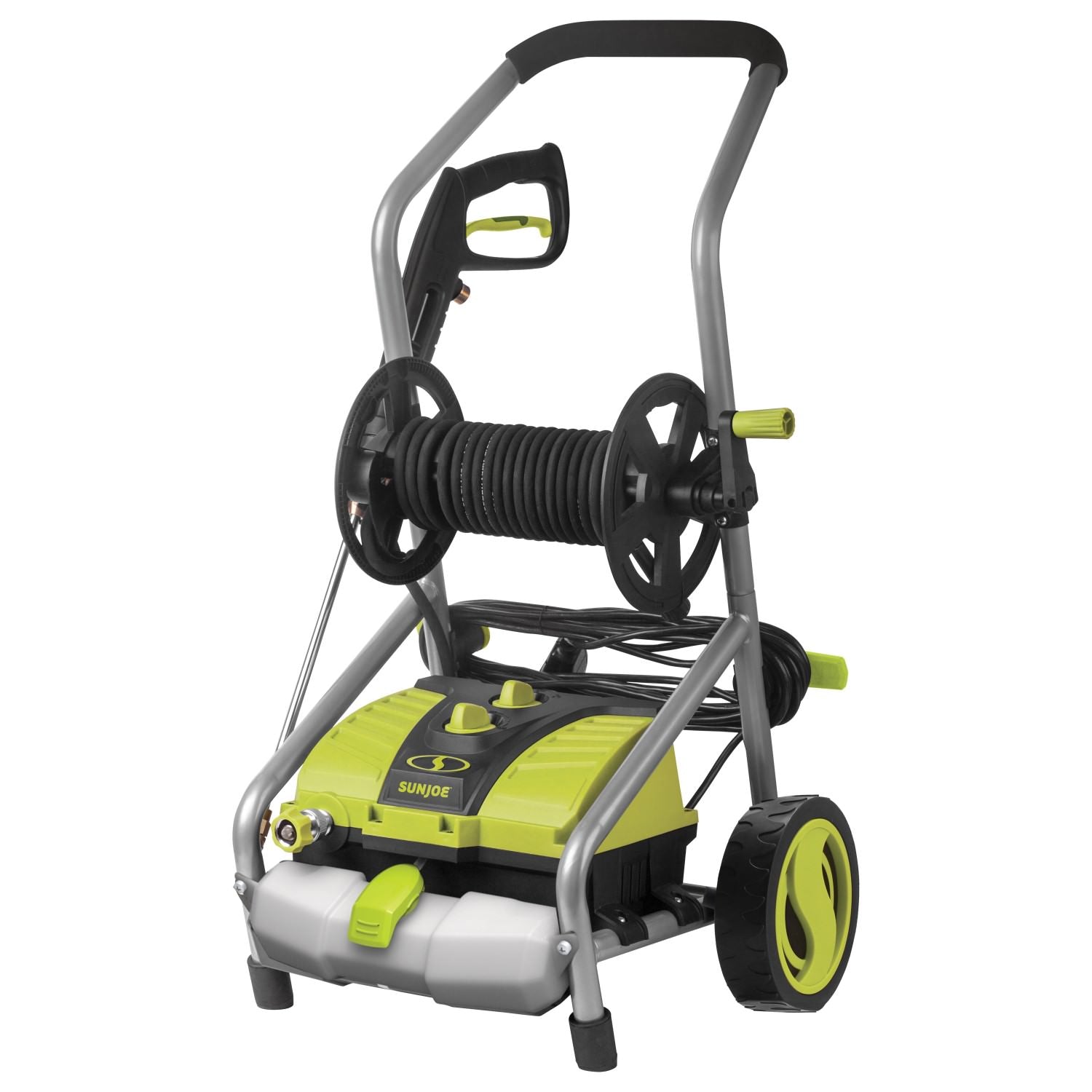 YOU NAME IT. YOU AIM IT. GRIME IS GONE. Tackle your toughest home, outdoor and auto cleaning projects with ease with the Sun Joe SPX4001 Electric Pressure Washer! Packed with 1800 watts of pure power, the 14.5-amp motor generates up to 2030 PSI to demolish every last bit of dirt, grease, gunk and grime. Five Quick-Connect tips allow you to go from intense jet to gentle spray to suit the cleaning task, and the onboard 54.1 fl oz detergent tank lets you dial-in just the right amount of detergent to give your cleaning blast a boost! Featuring Sun Joe's exclusive Pressure-Select Technology, the SPX4001 lets you pick the perfect pressure to combat dirt and grime with professional results, and a Total Stop power-saving system designed to save energy and prolong pump life when the trigger is not engaged. Other premium features on the SPX4001 include an onboard hose reel for quick and easy clean-up and storage, a 20-foot high pressure hose, and 35-foot power cord. Cut your outdoor cleaning chores down to size, and Go With Joe - the SPX4001 Electric Pressure Washer from Sun Joe. Get Equipped.