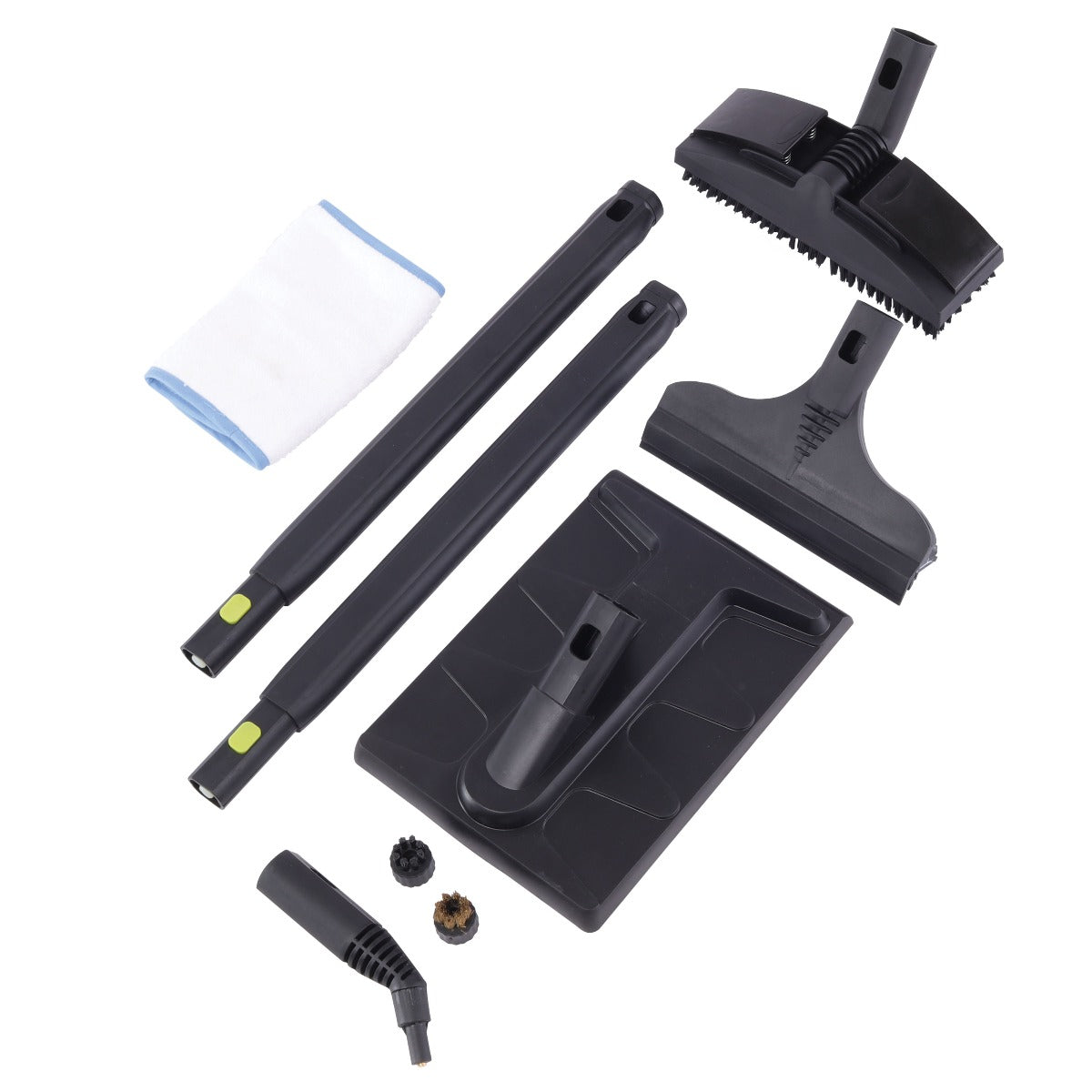 Featuring the latest in steam-pressure technology, the STM30E reaches a temperature of 212°F (100°C) in as little as 30 seconds! Includes 8-piece accessory kit for a variety of cleaning tasks, plus auto shut-off and low-water indicators to make cleaning a breeze.Sun Joe's STM30E Steam Mop Cleaner is perfect for a wide range of home and auto applications. With it's powerful 13-amp motor and continuous 50-PSI high-pressure stream, watch years of yuck disappear in seconds with a fast blast of hot-pressure steam. Tackle common surfaces around the house, such as counters, floors, wood, carpets, laminate, tile, ceramic, grout, rugs, glass, bathrooms, showers, furniture, leather, appliances, stoves, grills, and more. Eliminate deep-seated dirt and odors from vehicle interiors, for detailing all cars, trucks, RVs, campers, floor mats, upholstery, seat cushions, dashboards, consoles, vents, door panels, windows and jambs.With the included jet nozzle, copper & nylon utility brushes, wallpaper steam plate, cleaning brush, window/tile squeegee, and extension tubes, you can keep your home and vehicles clean & sanitized thanks to the natural grime-fighting power of steam!
