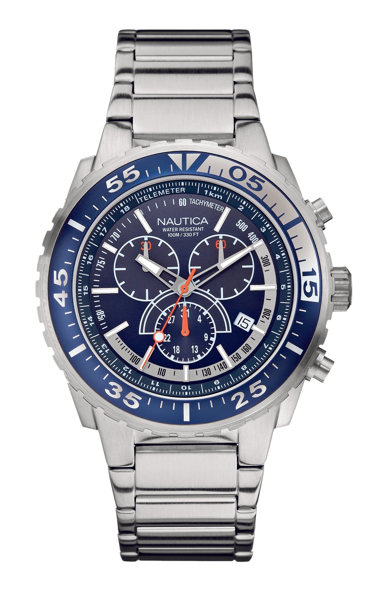 Case diameter: 45 mm. Fashion active chronograph. Durable mineral crystal protects watch from scratches. Water-resistant to 100 M (330 feet). Includes gift box.