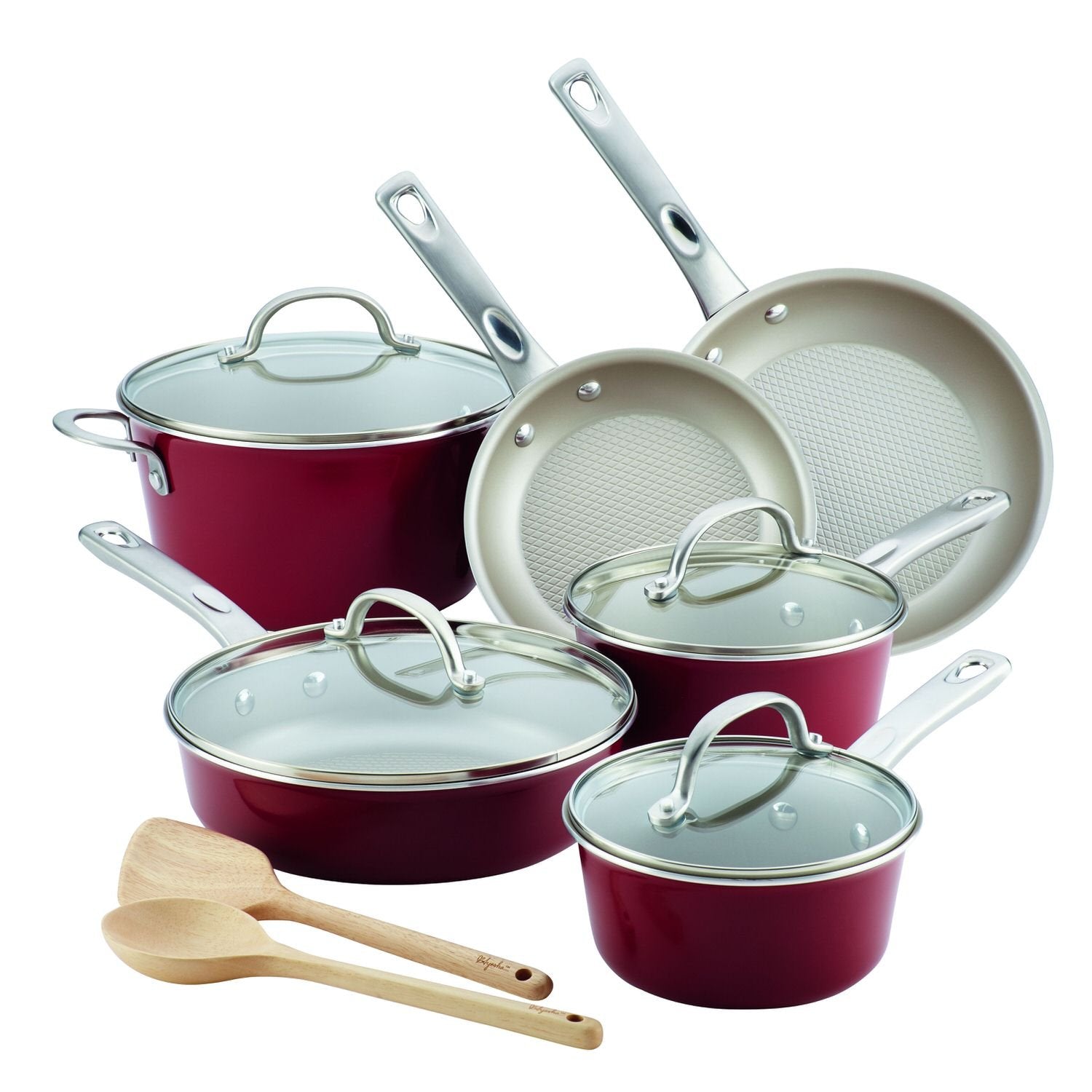 This collection of inspiring, high-quality cookware includes all the essentials for creating flawless traditional favorites, whipping up fun and easy weeknight family dinners, or making a serious signature statement on new recipes for brunches, date night, or holiday get-togethers. Featuring saucepans in two convenient sizes, a covered Dutch oven, two skillets, and a covered saute pan, gourmets and novice chefs alike will be prepped and prepared to pull off Ayesha's Brown Sugar Roasted Chicken, Sweet and Savory Shrimp and Grits, or Olive and Mushroom Smothered Pork Tenderloin.