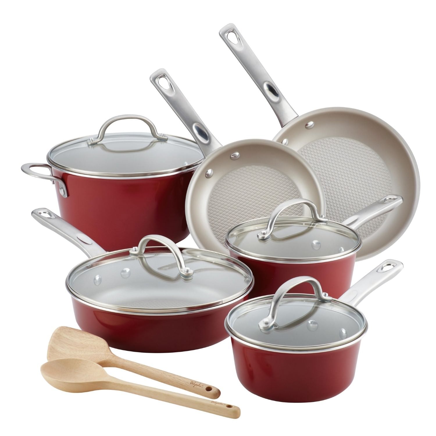 12pc Home Collection Nonstick Cookware Set Sienna Red