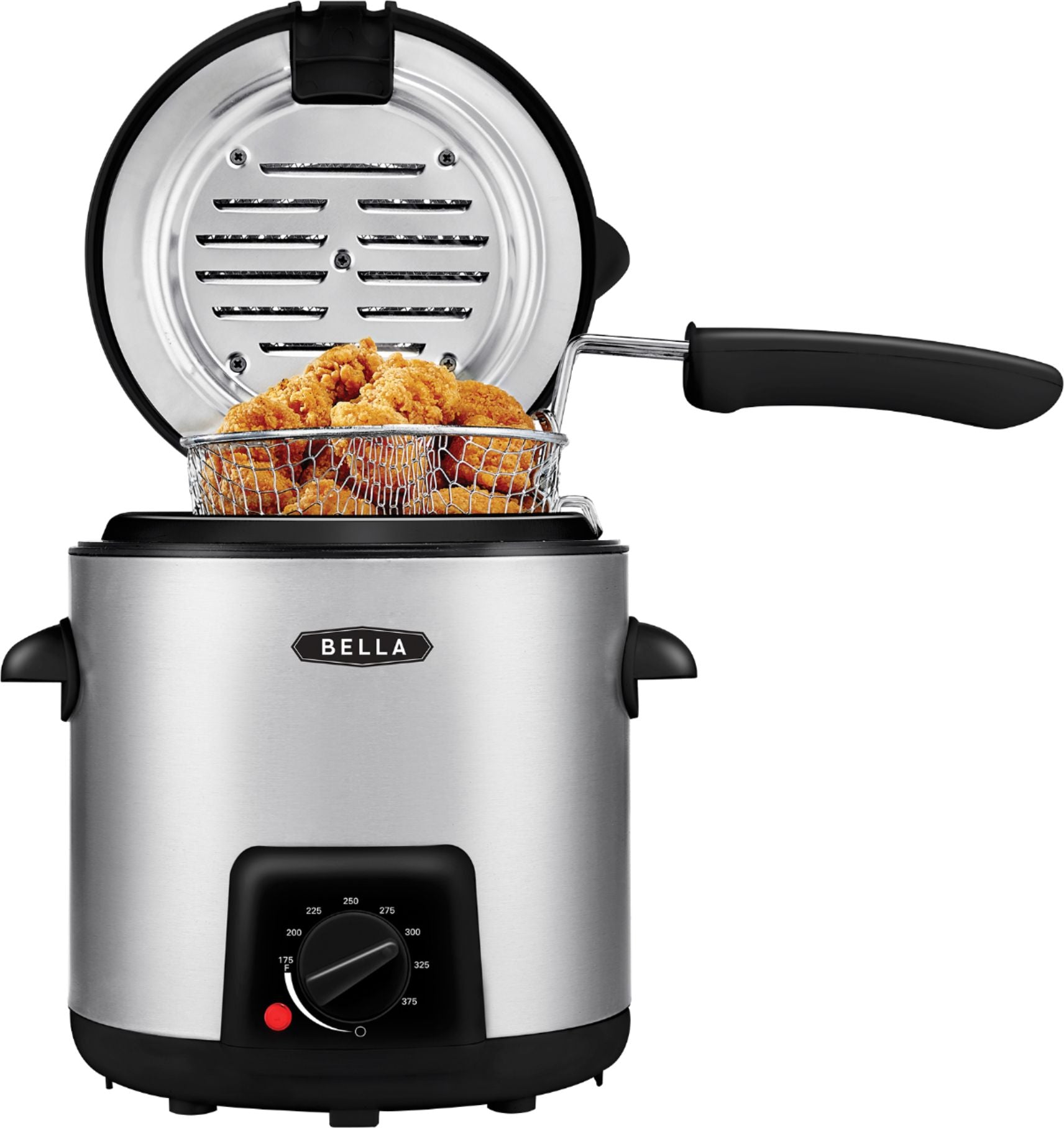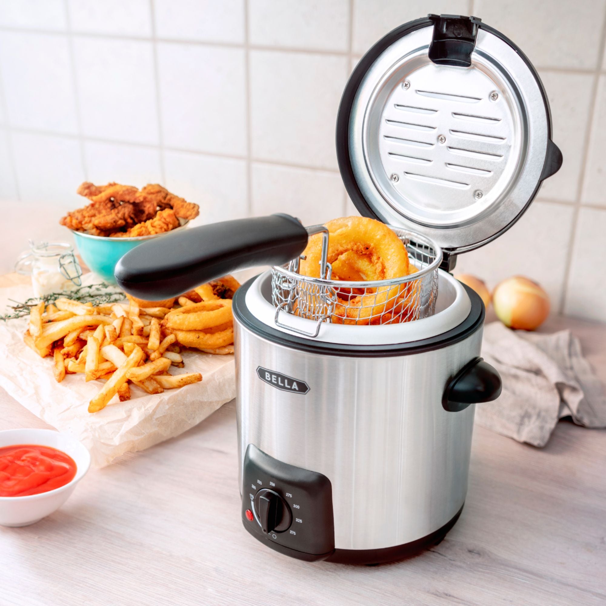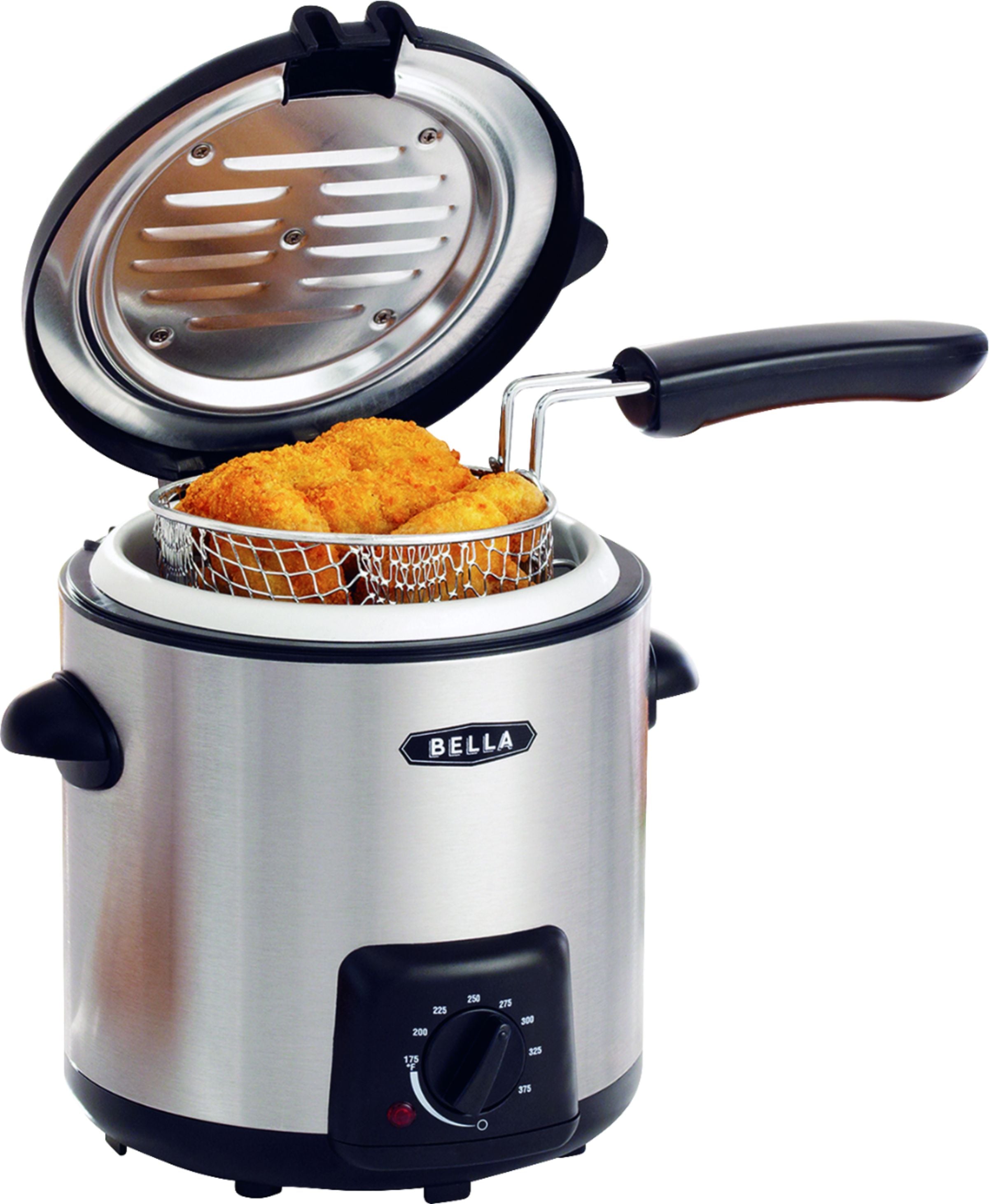 The Bella 0.9L Deep Fryer is the perfect solution for those looking for functionality and flavor in a bite sized package. This deep fryer can hold up to 0.55 lbs or 1.1 cups of food while only requiring 0.9L of oil. The compact size is ideal for smaller kitchens or meals for one. The stainless steel housing with cool touch handles allow for added safety while the odor filter limits unpleasant odor in your home. Save time on clean up with the removable and dishwasher safe lid, basket and basket handle.