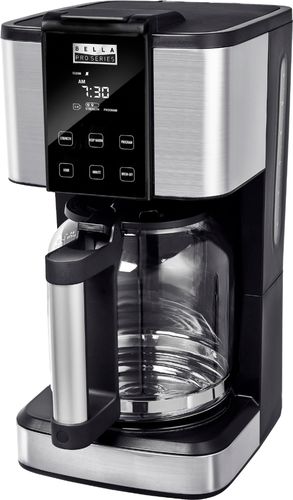 Caffeinate your morning with the Bella Pro Series 14-Cup Touchscreen Coffee Maker. The 1200-watt brewing system quickly brews 14 5-oz. cups of coffee in minutes, ideal for busy mornings. 1 - 4 cup feature for large carafe taste in a smaller batch and brew strength selector for a high quality, customized brew. Extra-large easy to read LCD display with digital touchscreen interface and LED display. Prepare ahead of time by programming up to 24 hours in advance. Adjustable 30 minute to 4-hour automatic shut off for added safety. No time to wait for the whole pot? Grab a quick mug while brewing with the pause and serve feature. The special cleaning cycle extends product life while ensure coffee is always at its optimum flavor. Sustainable and reusable permanent filter basket and measuring spoon included.