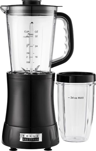Blend a delicious smoothie in seconds with the Bella Pro Series 2 in 1 Blender. The powerful 800 peak watt motor crushes ice into snow for smooth beverages and homemade snow cones. With effortless one twist operation to blend fresh or frozen fruits and vegetables, the Stainless Steel nutri-extract blade breaks down fruits and vegetables while keeping their vital nutrients. Blend directly into the 24-oz. personal cup for single serve beverages or the 32-oz. blending jar for family-sized portions. Clean up is easy with the detachable blade system and BPA free, dishwasher safe accessories.