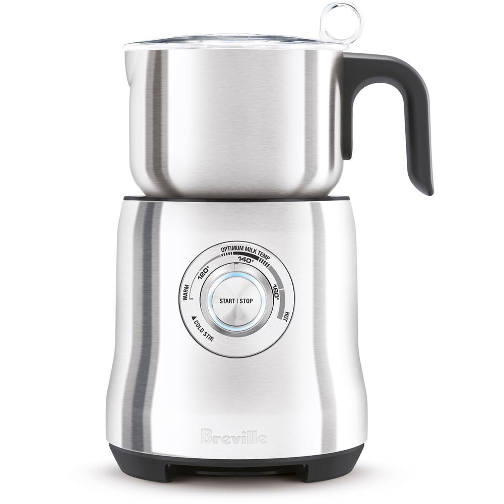 Breville's Milk Café uses induction heating and spinning to make those small bubbles that create the creamy consistency of a rich hot chocolate, a smooth latte or a frothy cappuccino. Simply choose the appropriate frothing disc — latte for a creamy result, the cappuccino disc for more froth — fill with enough milk for one to three cups, select your temperature, and start. The Milk Café will froth and turn itself off when the desired temperature is achieved. And as it uses induction heating, you can simply place the jug in the dishwasher for easy cleaning.