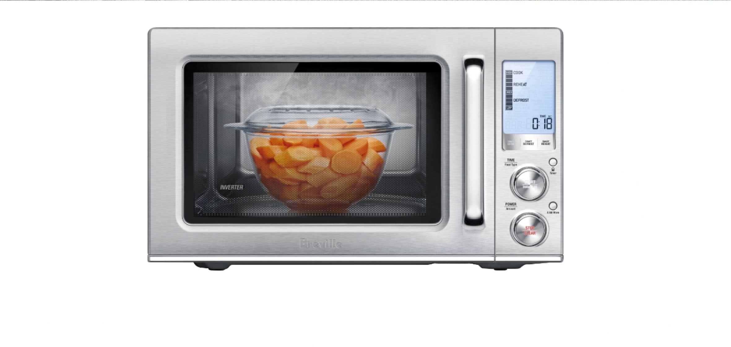 Take the guesswork out of the equation with this Breville the Smooth Wave microwave. Sensor iQ technology monitors the amount of steam produced during the cooking process and automatically adjusts the power level preventing overcooked and burned food. This Breville the Smooth Wave microwave features 15 smart presets for one-touch operation and the soft-close door helps avoid loud slams.