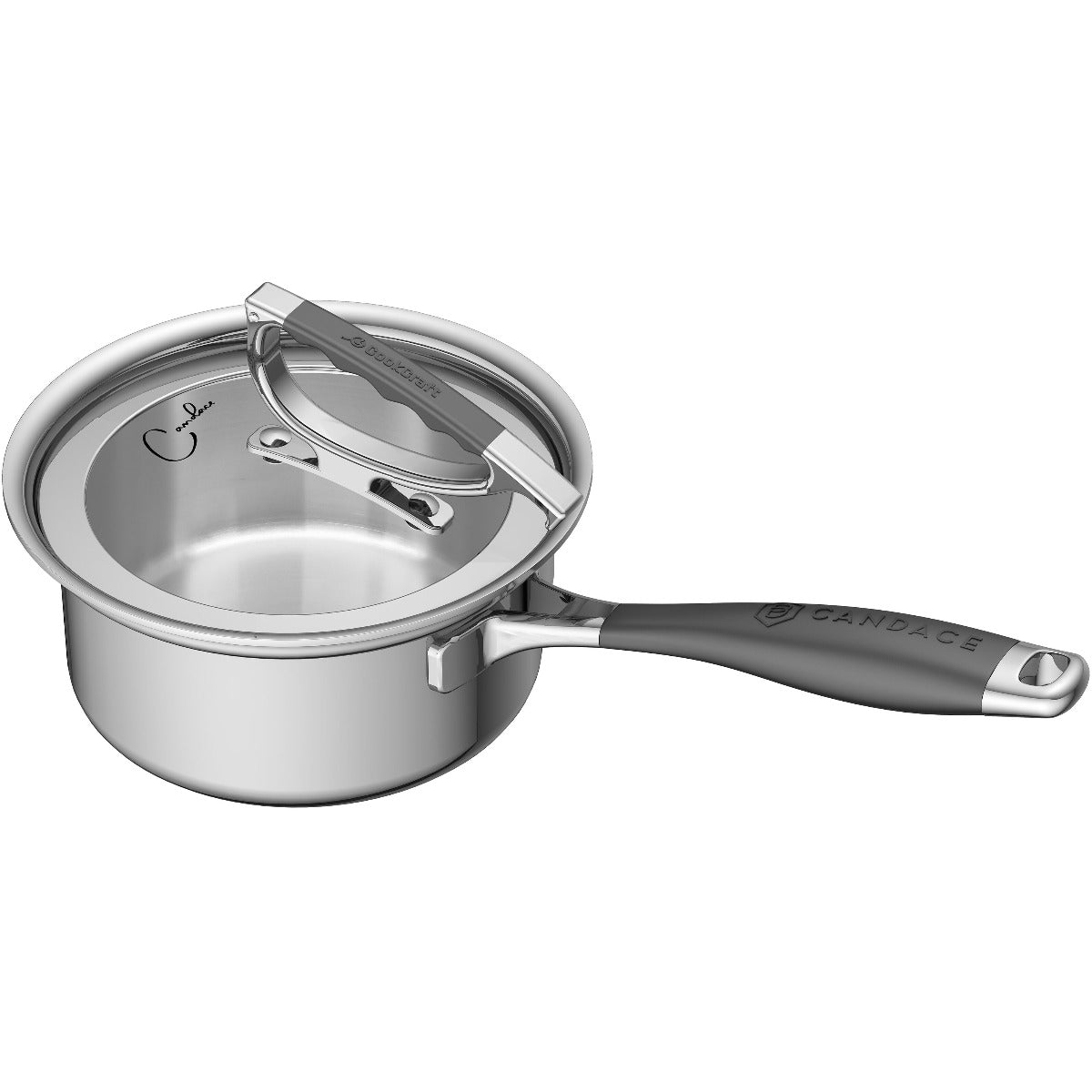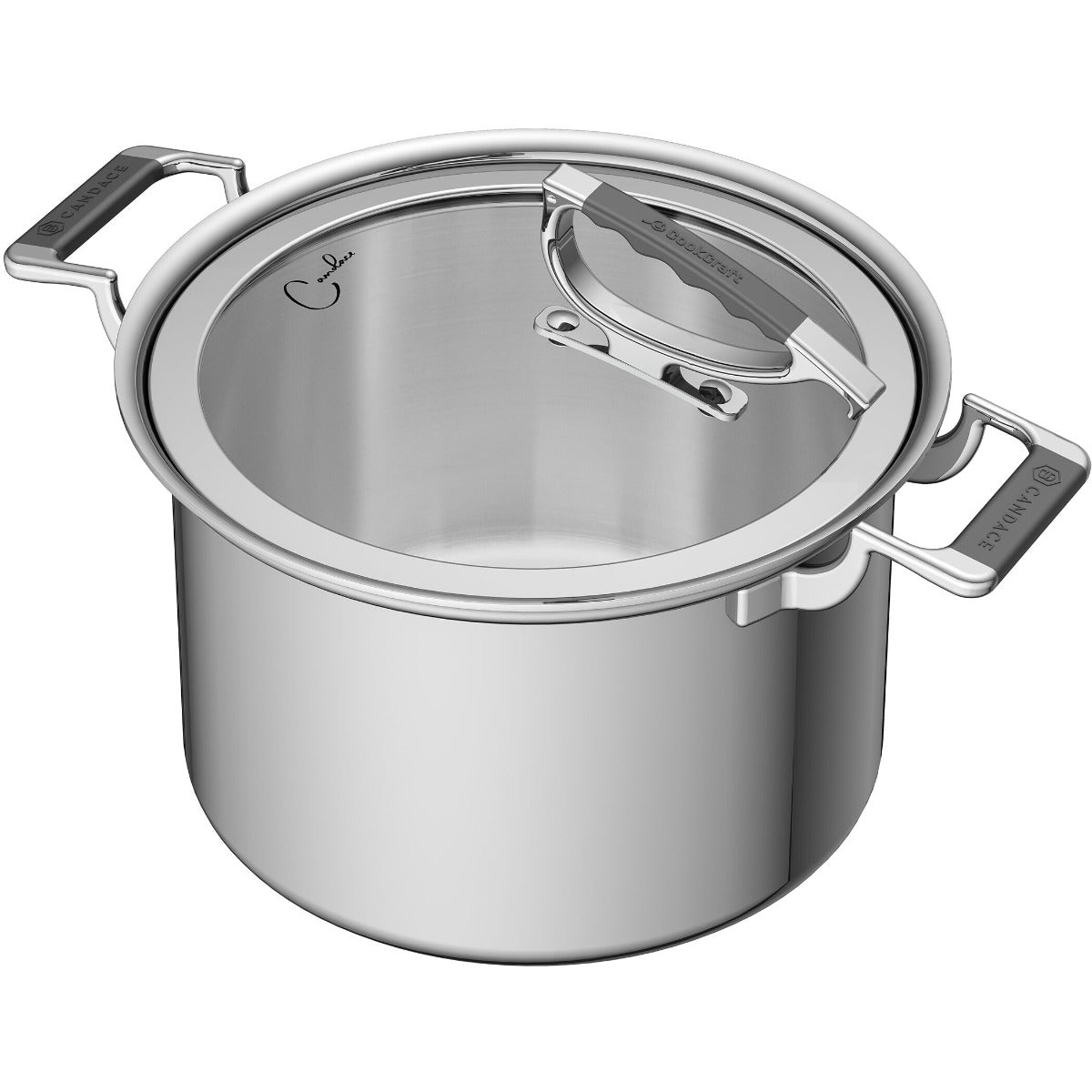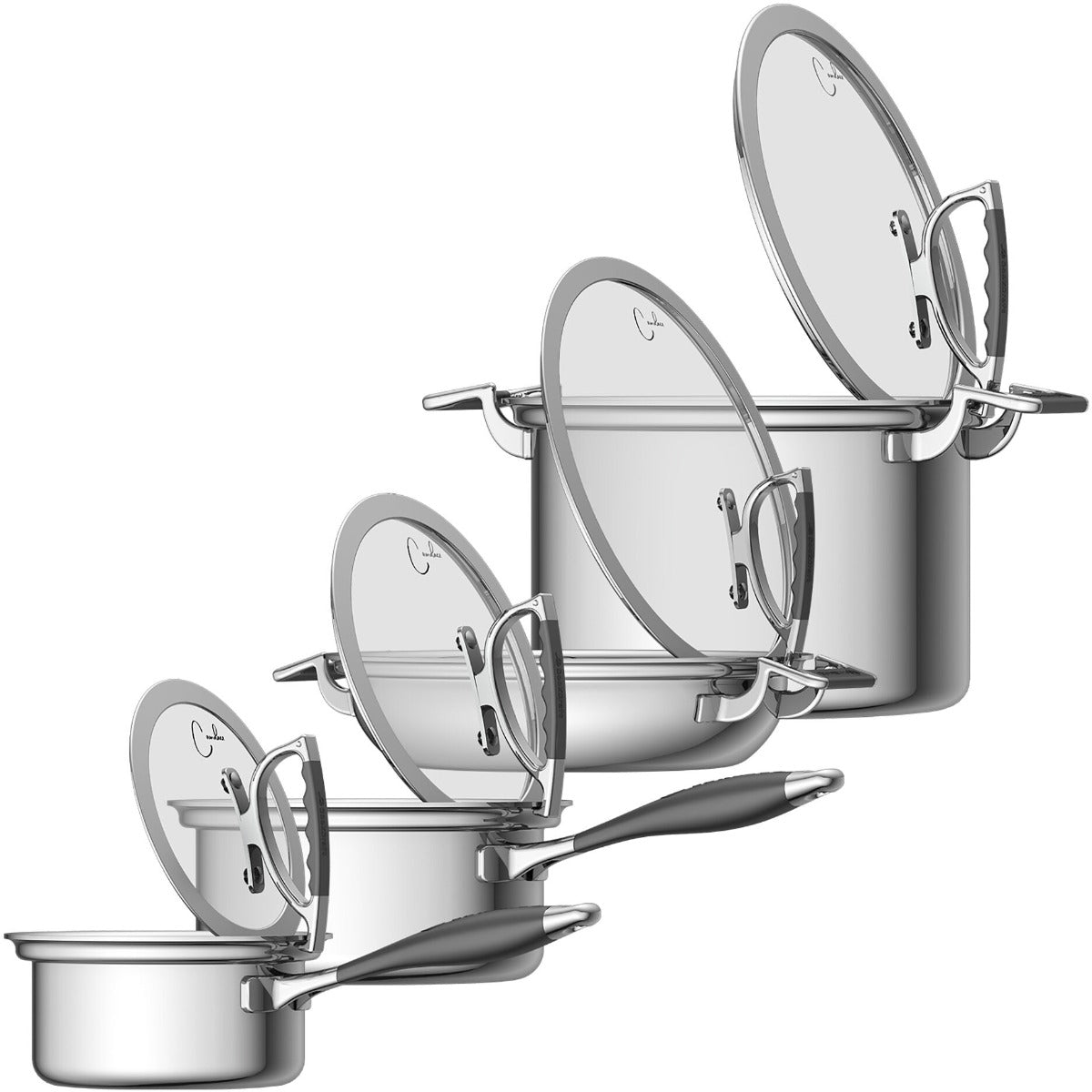 CookCraft by Candace 8-Piece Tri-Ply Stainless Steel Luxury Cookware Set featuring Silicone Handles and Glass Lid with Convenient Rim Latch