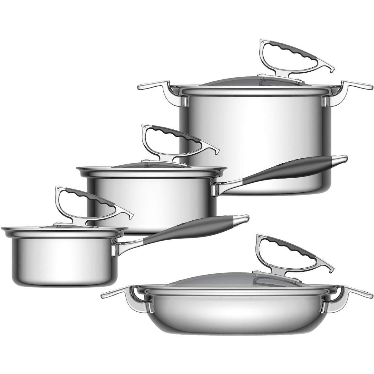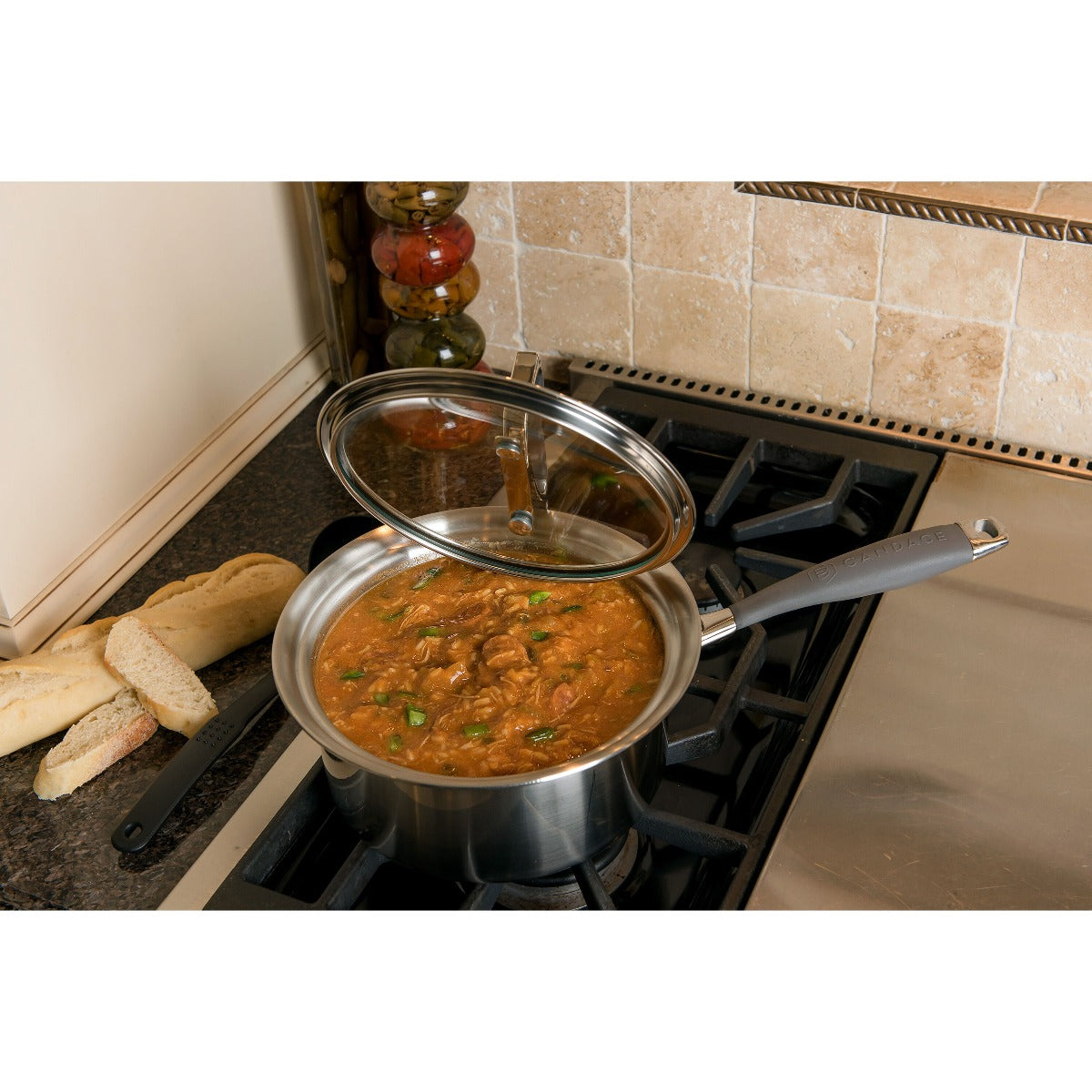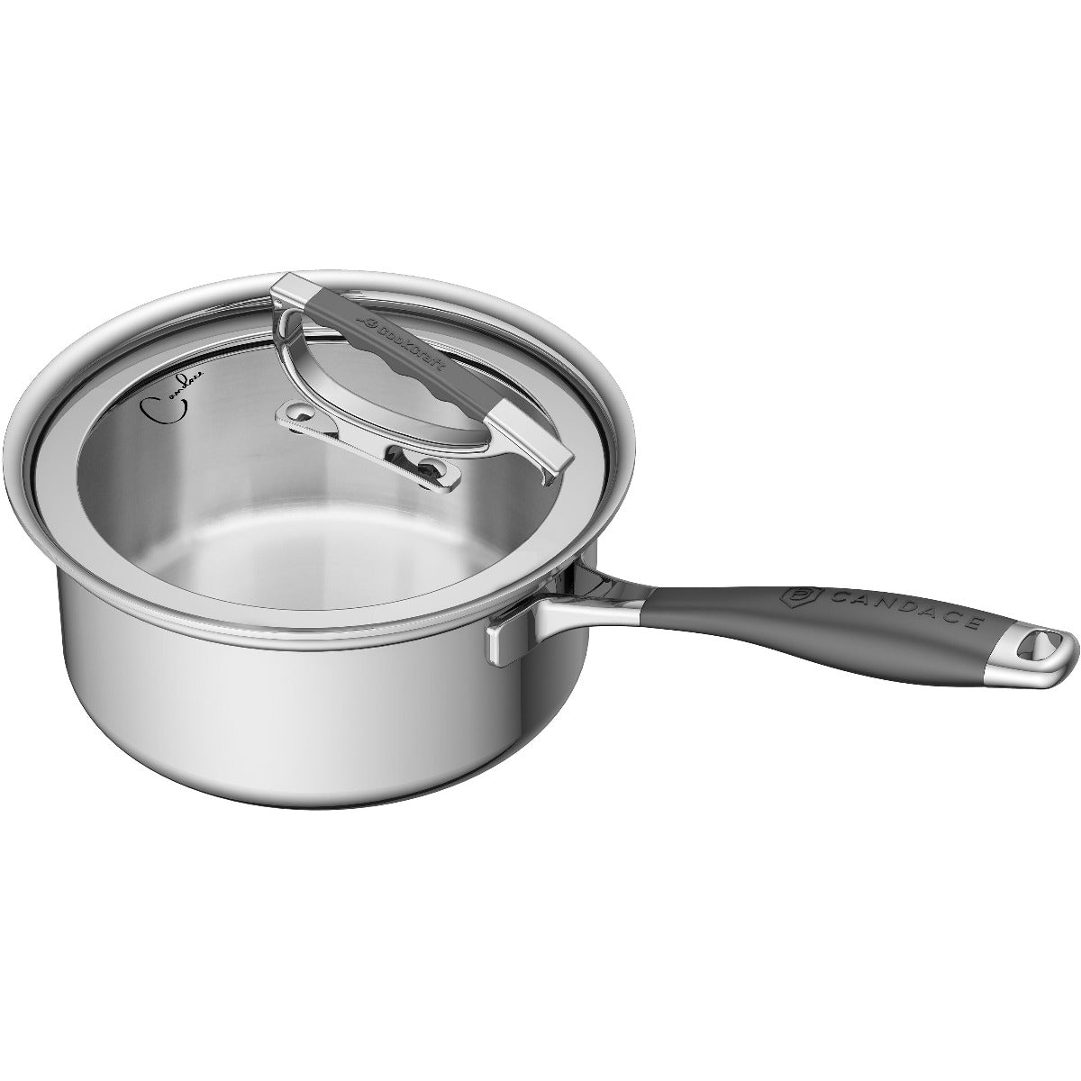 CookCraft by Candace 8-Piece Tri-Ply Stainless Steel Luxury Cookware Set featuring Silicone Handles and Glass Lid with Convenient Rim Latch