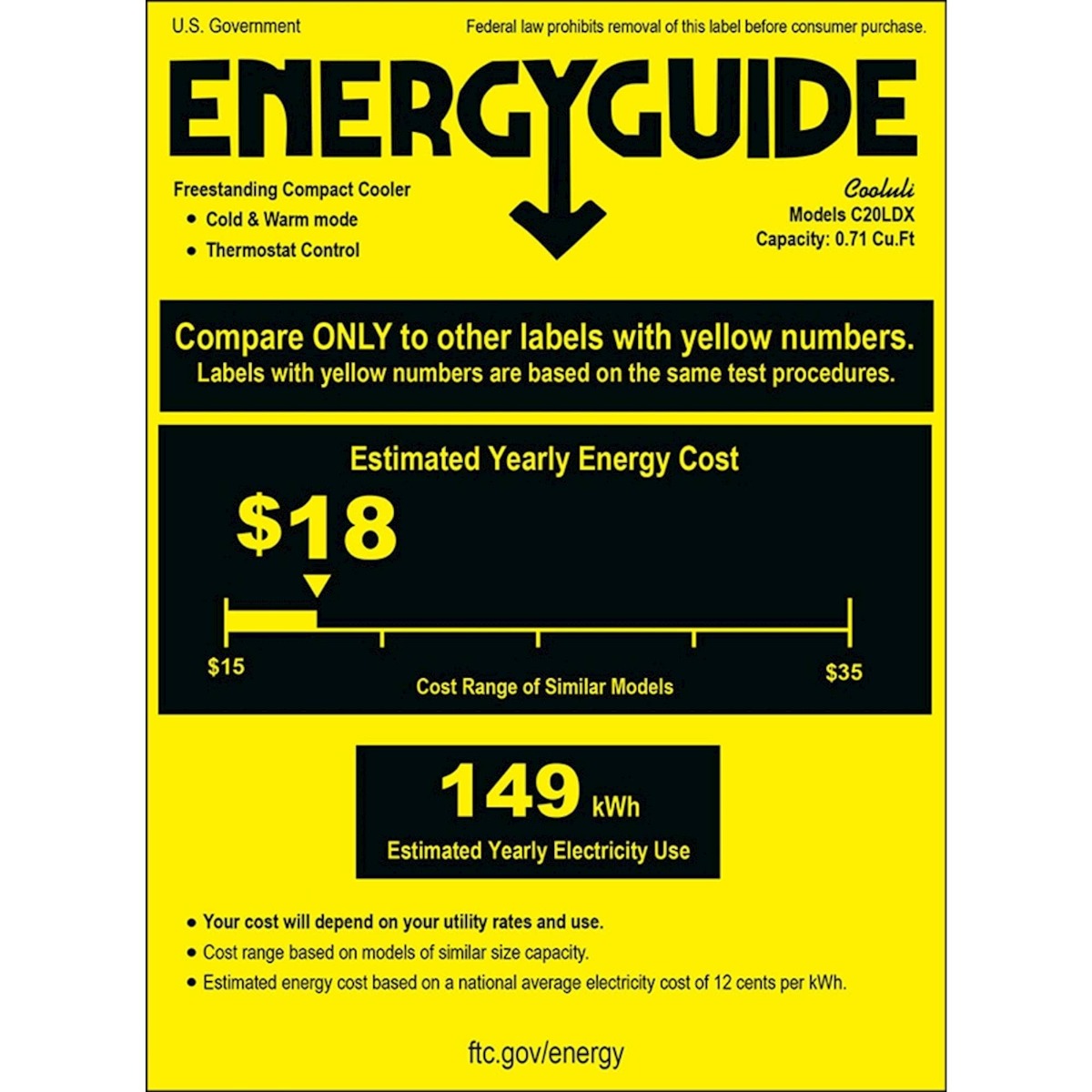 Keep your favorite foods and drinks at hand with this blue Cooluli Concord large mini-fridge. The recessed carry handles ensure hassle-free portability, while the digital thermostat and easy-to-read display allow for easy temperature control. This 20L Cooluli Concord large mini-fridge features EcoMax technology for quiet, efficient cooling performance, and the shelves offer organized storage.