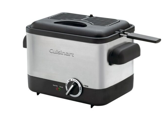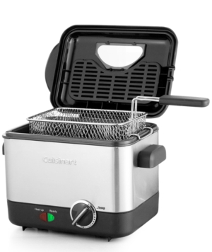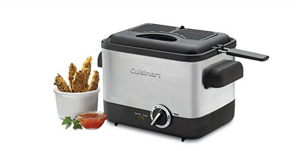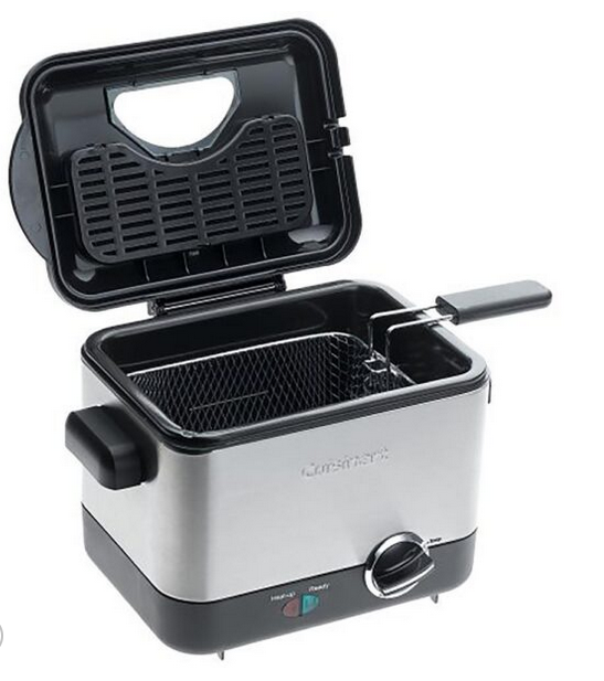 The Cuisinart CDF-100 compact deep fryer is compact and efficient appliance which fries three quarter pounds in just 1.1 ltrs of oil. It is ideal for making fried calamari, mozzarella sticks etc. Temperatures up to 375deg.F and a die-cast frying bowl maintain selected oil temperatures for optimum results.