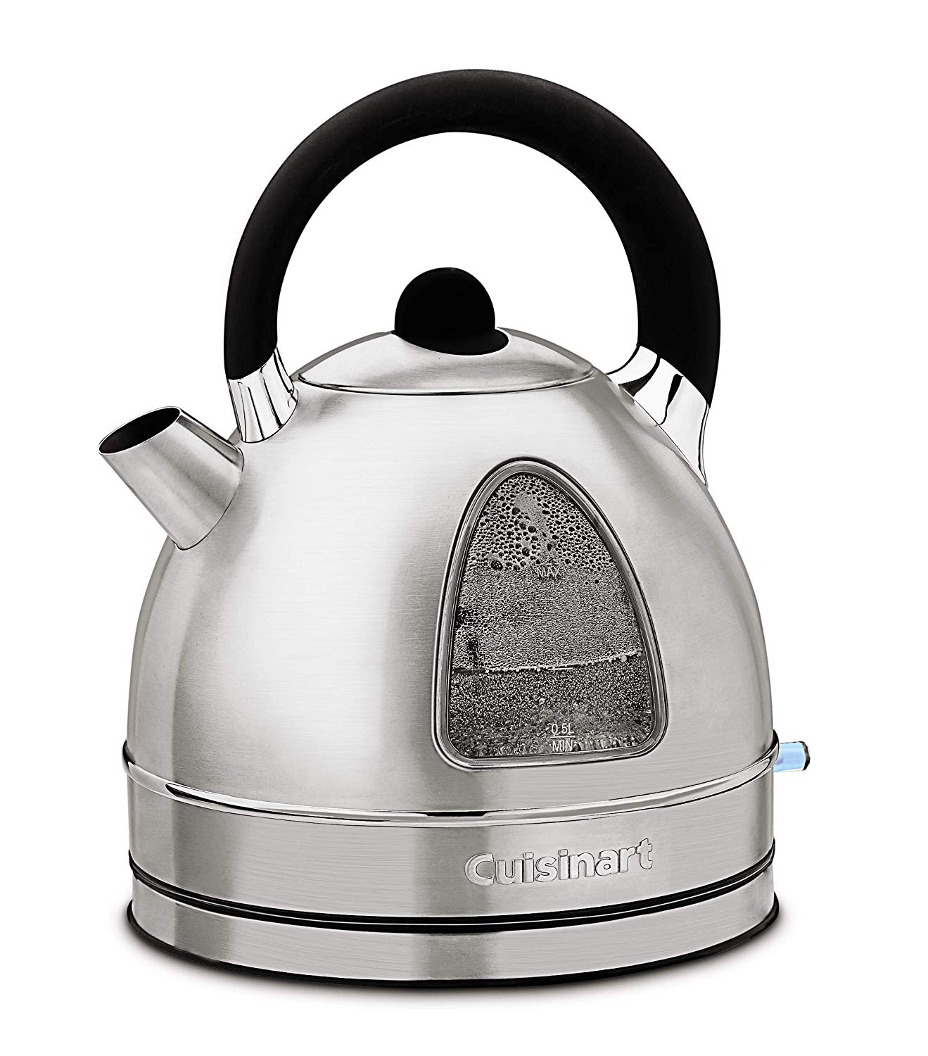 With classic stainless steel styling and a graceful stay-cool handle, the Cuisinart Cordless Electric Kettle looks sleek on any kitchen countertop. The convenient extra large window, with water level marks, lets you see when the water is boiling or kettle needs refilling. With a concealed heating element and easy one-touch operation, the Cordless Electric Kettle makes hot drinks fast and easy.