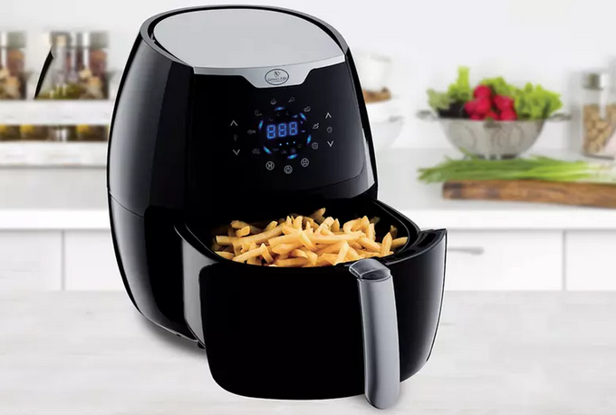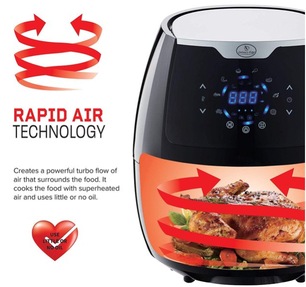 Digital Easy-Touch Panel 8 Preset Modes Timer with Auto Shut Off Premium Copper Titanium Ceramic Non-Stick Coated Basket-PTFE/PFOA FREE Easy Clean-Fry Basket is dishwasher safe Large Capacity-Perfect for family meals 1700 Watts of Power
