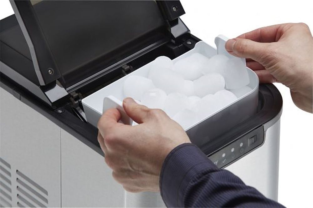 Control PanelSimple to understand and illuminated with LED lights, the electronic control panel lets you know when you need to add water, when the ice basket is full and allows you to choose the size of the ice cube