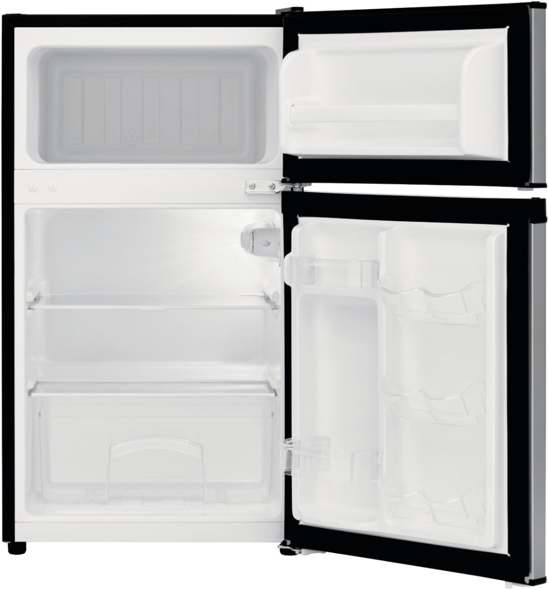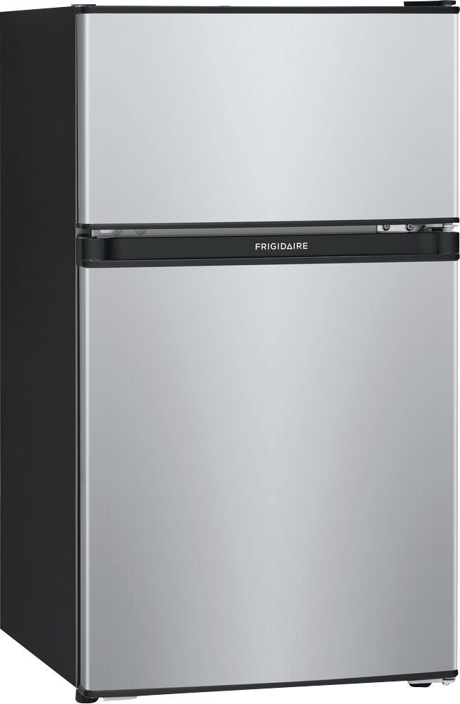 Bring convenient food storage to a home bar or small apartment kitchen with this Frigidaire compact refrigerator. Adjustable glass shelves make it easy to accommodate large items, and integrated door shelves hold cans of soda, bottles of juice and a tray of butter. This Frigidaire compact refrigerator comes with a separate freezer compartment, so you can stock up on frozen pizzas, entrees and desserts.