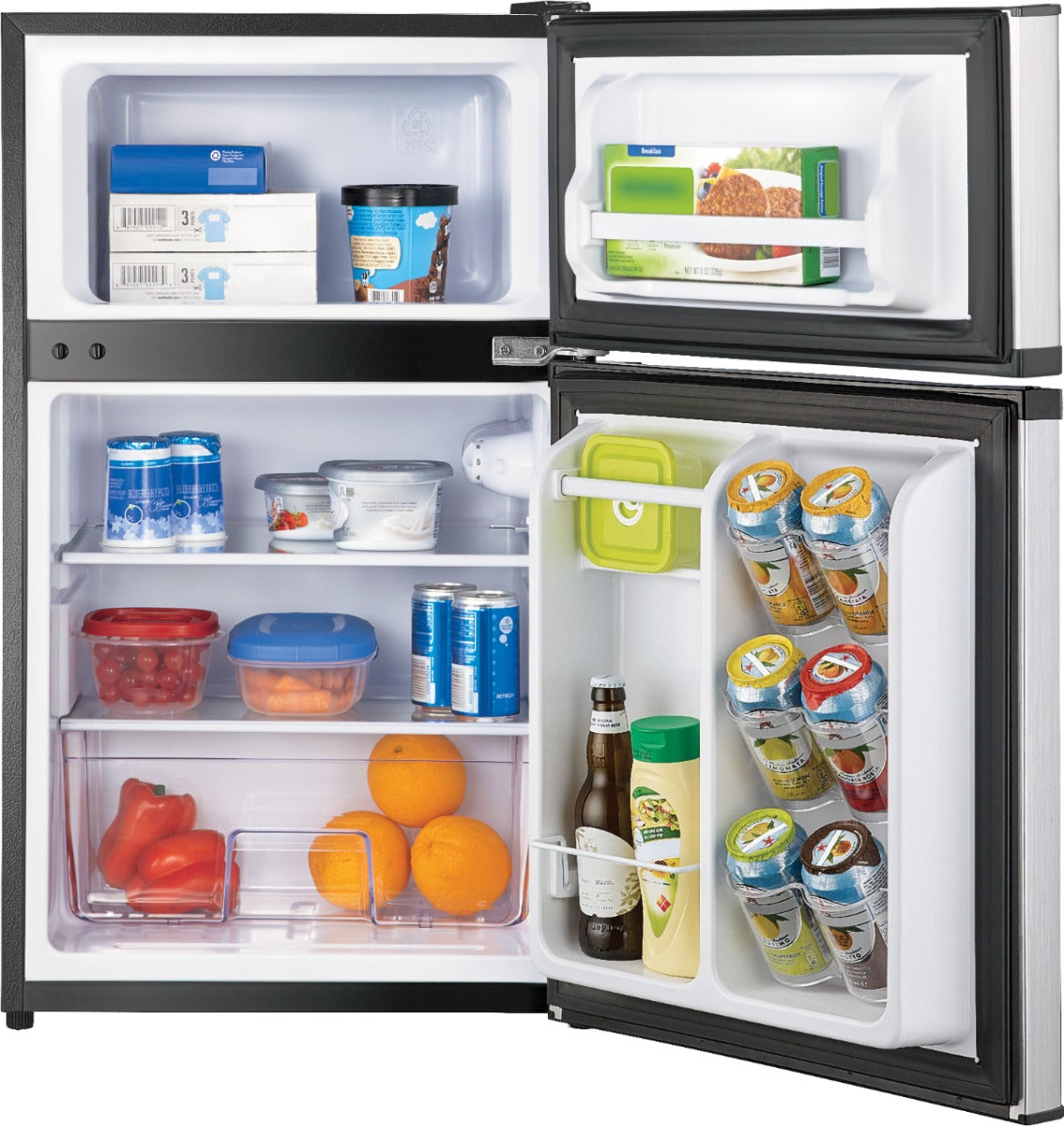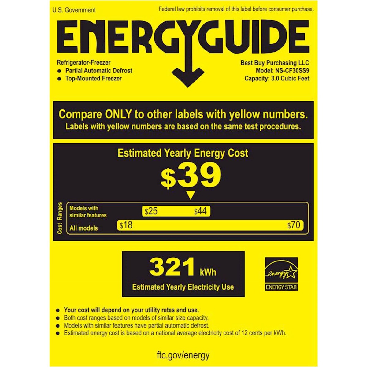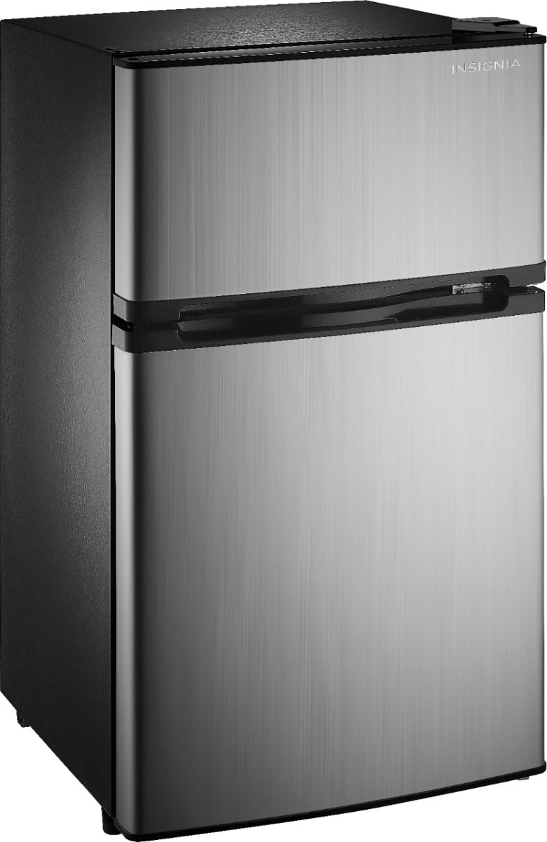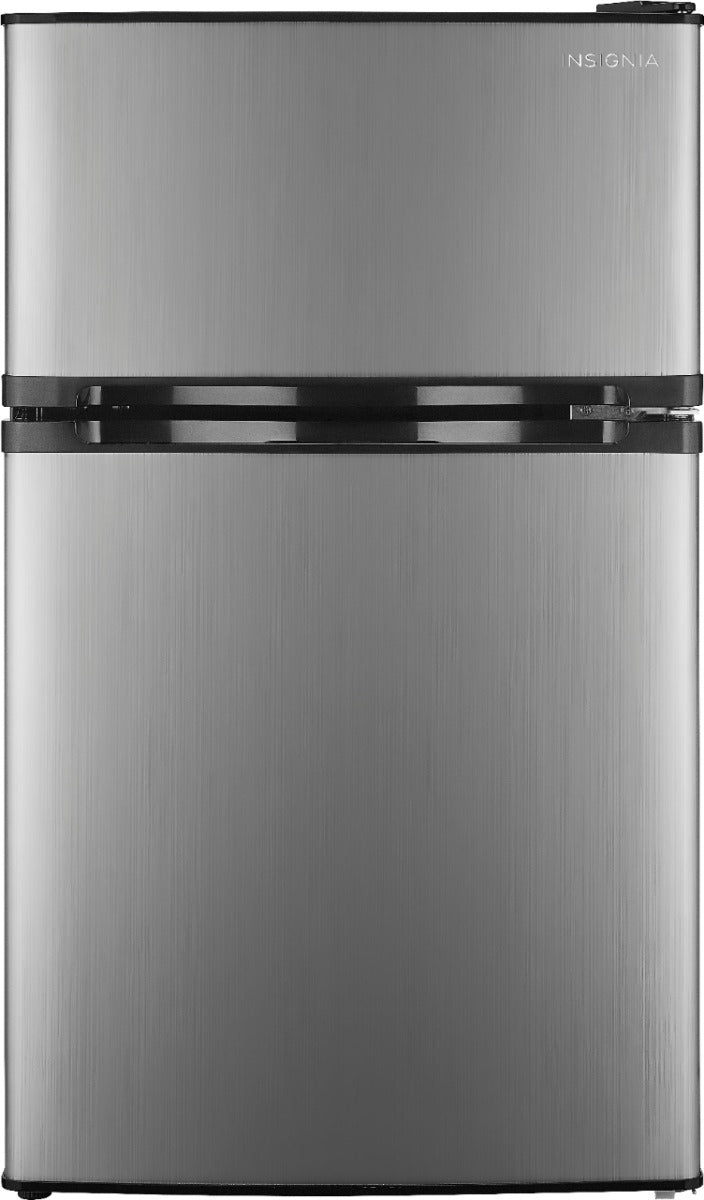 Reduce your electric bill with this Insignia 3.0 Cu. Ft. Mini Fridge with Top Freezer. This Energy Star-certified refrigerator provides 3 cu. ft. of storage space without using a lot of energy. Measuring only 19.1 inches wide this compact unit is perfect for apartment kitchens and other tight spaces. This Insignia 3.0 Cu. Ft. Mini Fridge with Top Freezer is a great option for storing weekly produce meats and frozen goods.