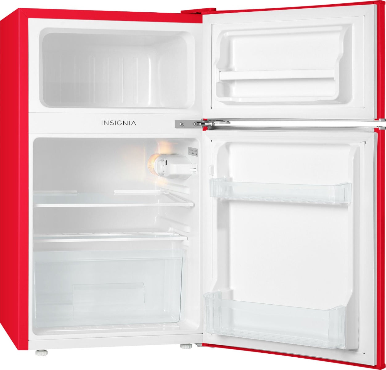 A refrigerator serves one fundamental purpose - to keep food cold. Rarely does style filter into the equation. But with the 3.1 cu. ft. Retro Mini Fridge with Top Freezer, you don't have to sacrifice style for functionality. Its small stature perfectly complements a basement, office, or dorm room. A dedicated crisper drawer is perfect for helping you preserve fruits and vegetables while adjustable shelving lets you to organize everything just the way you like it. A separate freezer compartment gives you .9 cu ft of storage space for your favorite frozen treats. The cherry on top is a fierce retro design and a hot rod red color that is sure to catch the attention of your guests, coworkers, or roommates.