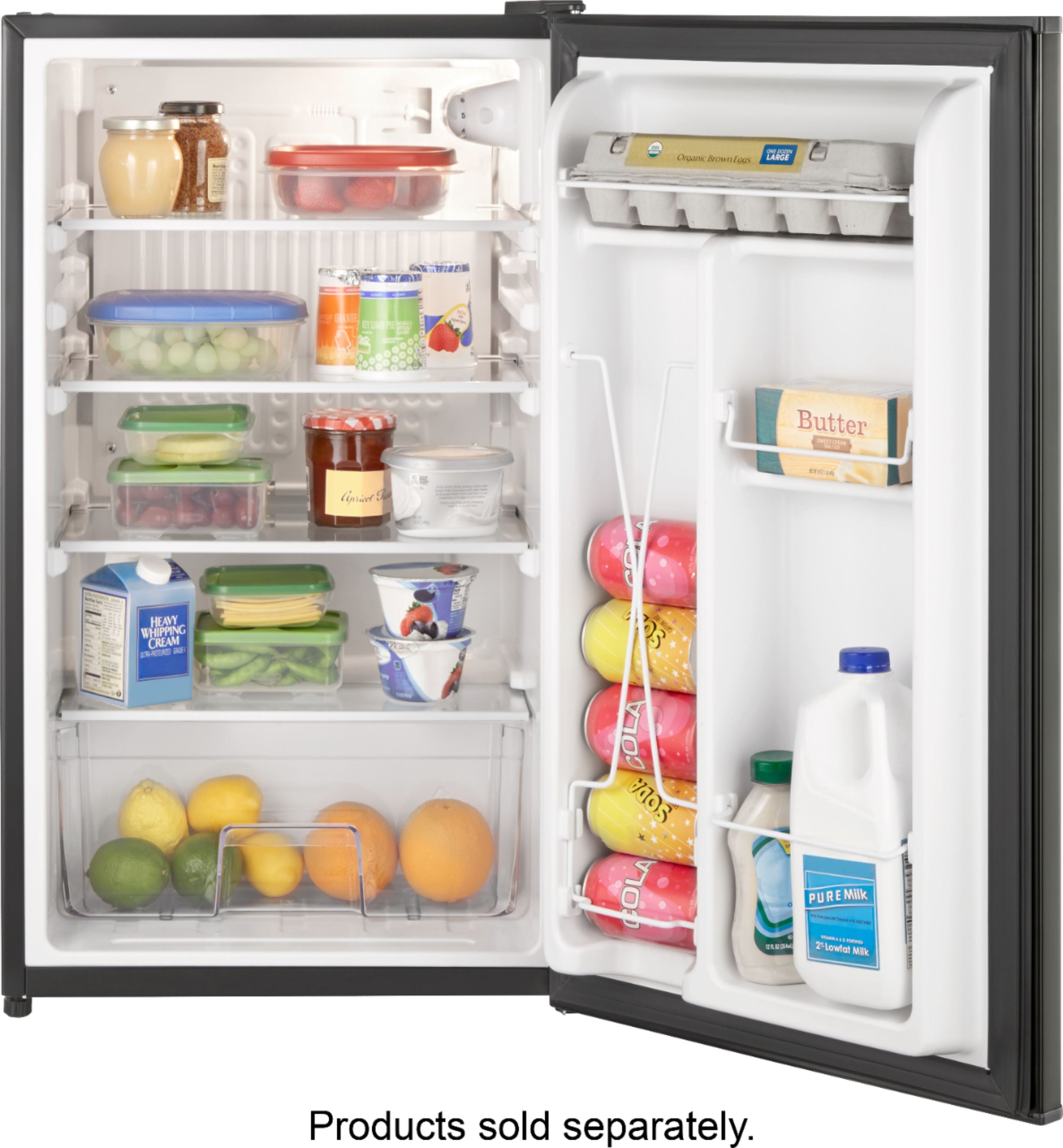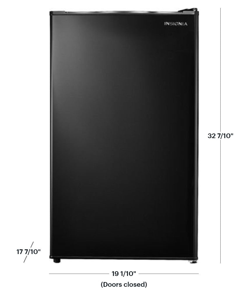 Keep the basics at the bar or in the dorm with this Insignia compact refrigerator. Adjustable glass shelves hold drinks and food and the crisper keeps veggies and fruit accessible. Additional storage in the door of this black 3.3 cu. ft. Insignia compact refrigerator keeps items such as soda and condiments easy to reach.