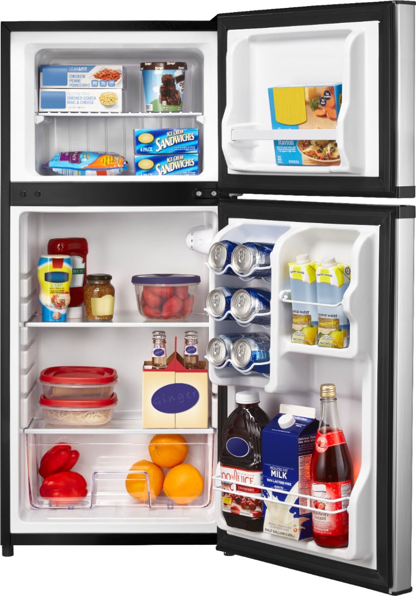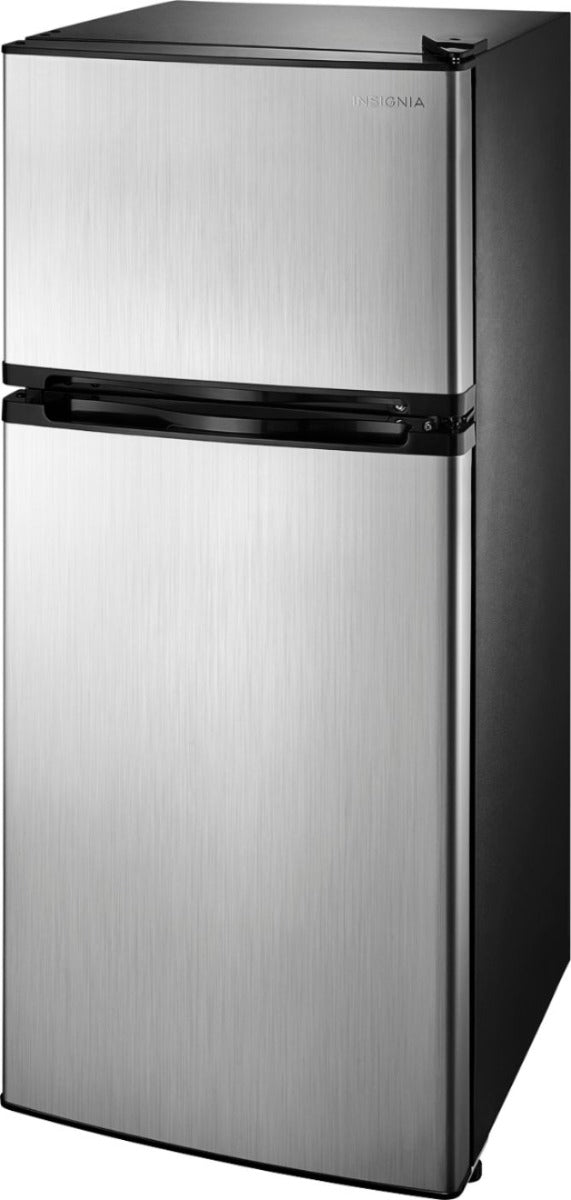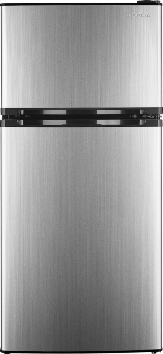 Keep cold beverages in a small room with this Insignia 4.3 Cu. Ft. Mini Fridge with Top Freezer. It has two adjustable shelves in the fridge and one in the freezer and its crisper drawer keeps produce fresh. This Insignia 4.3 Cu. Ft. Mini Fridge with Top Freezer has an interior light for spotting exactly what you need inside.