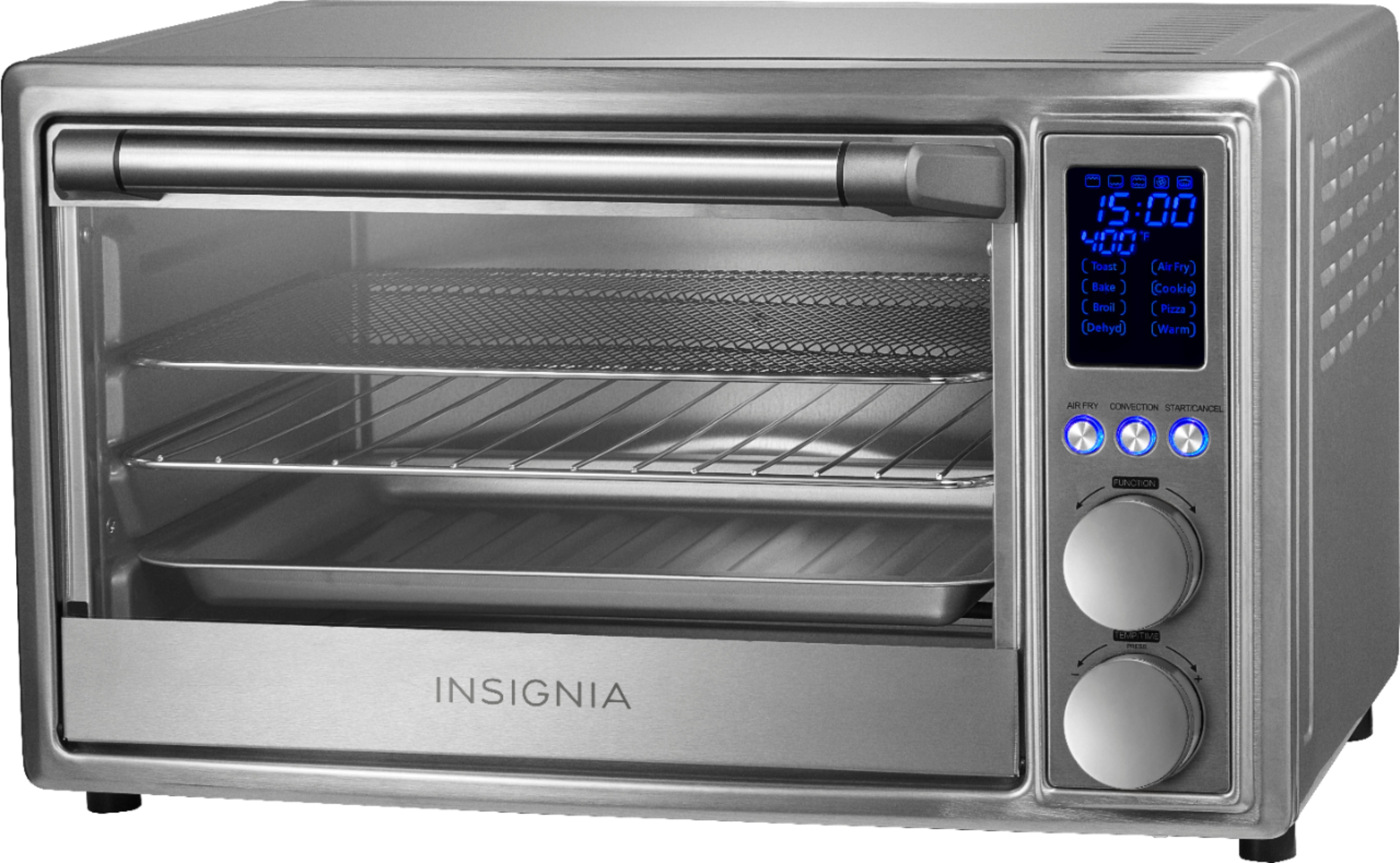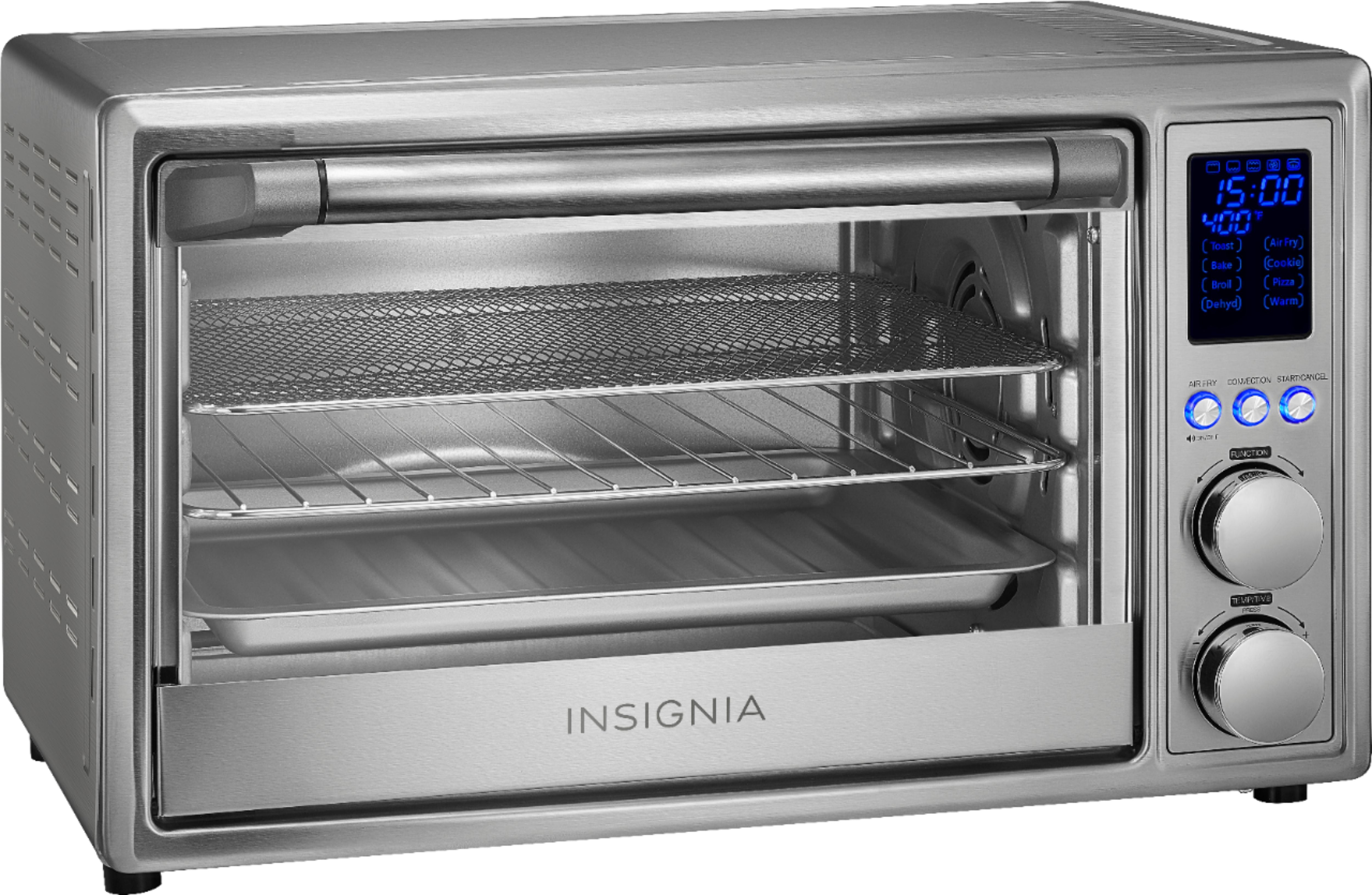 Enjoy your favorite meals with this six-slice Insignia digital toaster oven with air frying capabilities. With the use of convection technology this toaster oven is able to perform 8 functions such as air-fry dehydrate and broil. Fit a 12" pizza into the 25L interior and choose your food's optimal cooking position with the three adjustable rack positions.