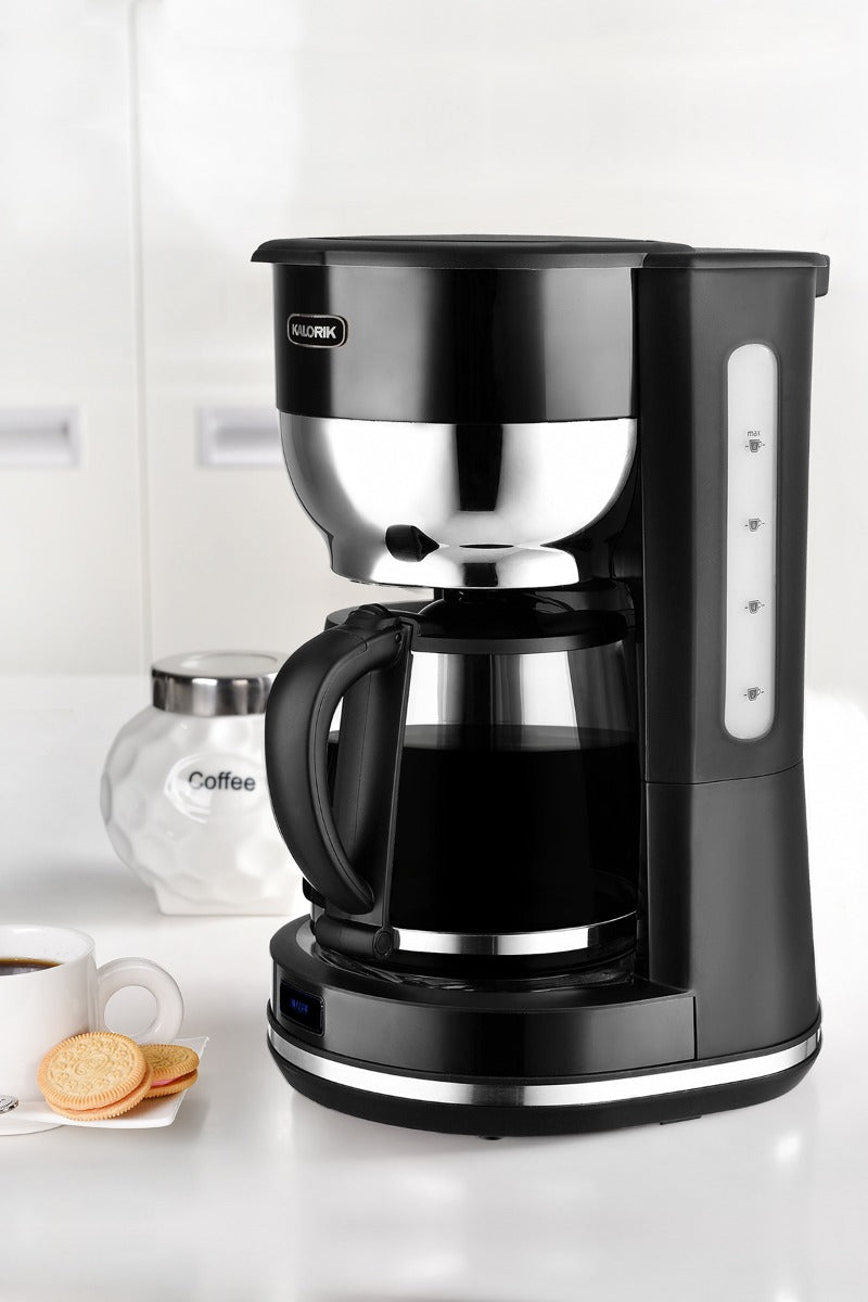 Start your day off right with the Kalorik 10 Cup Retro Coffee Maker. This iconic, mid-century inspired appliance is sure to perk you - and your kitchen decor - right up. Not only does it make a delicious brew, its retro color and chrome accents add a sleek vintage look to your kitchen. The Kalorik 10 Cup Retro Coffee Maker can brew up to 10 cups of coffee at a time. An “auto-pause feature stops the brewing process when you remove the pitcher, so you can serve yourself (or a loved one) before brewing is complete. The keep-warm function keeps coffee warm for up to 2 hours, shutting itself off automatically. Part of the Kalorik Retro Line, the Kalorik 10 Cup Retro Coffee Maker comes in vintage cream and retro black. Get the matching toaster and kettle for the complete look!