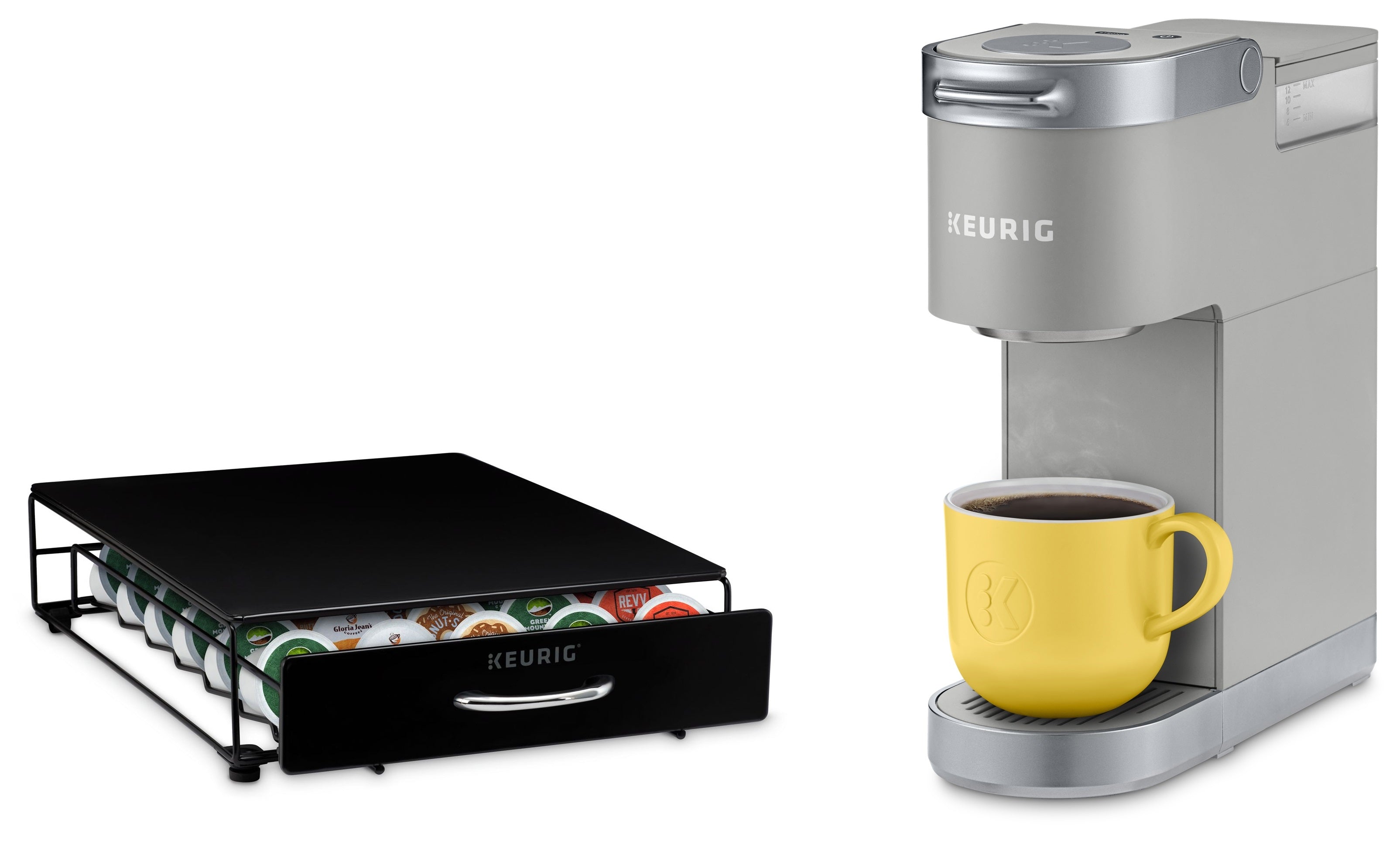 When space and portability are important, choose the NEW Keurig Mini Plus Coffee Maker. It brews 6 oz., 8 oz.,10 oz. and 12 oz size cups in under two minutes. Keurig Mini Plus Coffee Maker is a compact personal coffee maker, portable and great for small spaces. It makes single cup brewing fast, convenient and simple. To operate, simply add fresh water into the removable, single-use reservoir, choose your favorite K-Cup pod, brew, and enjoy! The Keurig Rolling Storage Drawer is the ultimate space saving storage solution. Simply place your brewer on top of the drawer and store up to 35 K-Cup pods without taking up any additional space on your counter top. As an added convenience, the unique wheeled rolling system allows you to push your brewer forward and backward under your cabinets with ease.