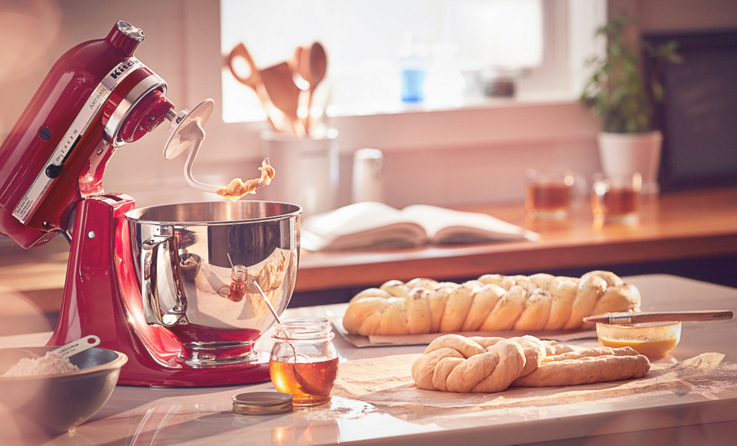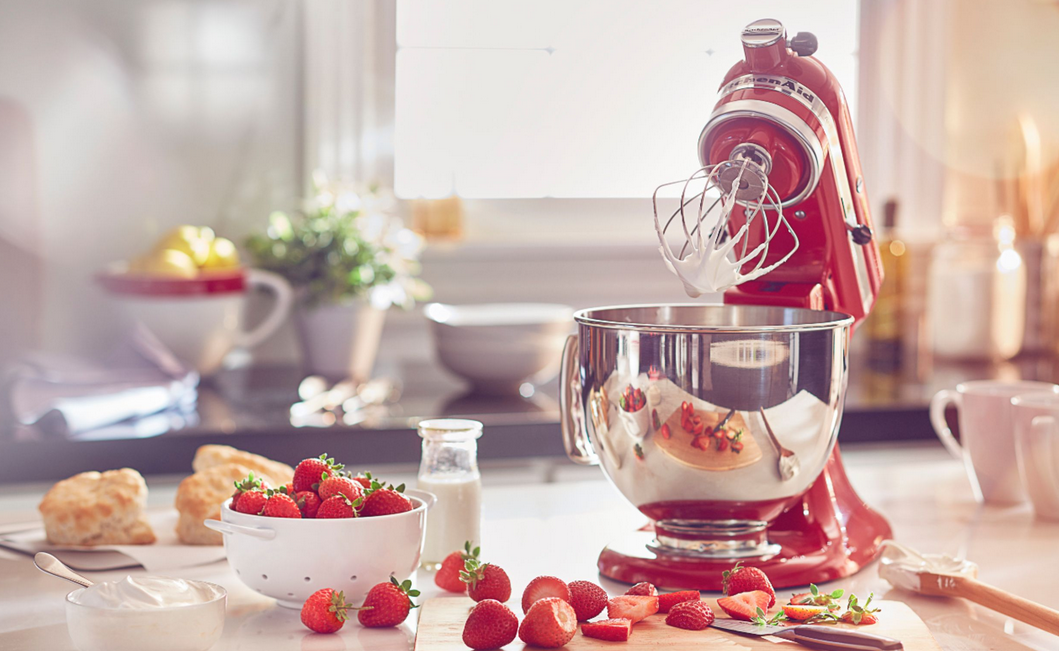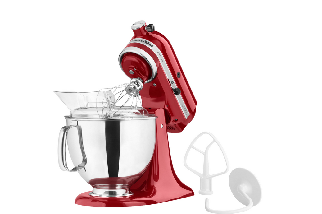 KitchenAid Artisan Series 5-Quart KSM150PSER Tilt-Head Stand Mixer: Make your favorite appetizers cakes cookies and other baked goods with this versatile tilt-head stand mixer. The comfortable handle and 10 speed options help you flawlessly blend even the thickest batters. Easily match your kitchen d